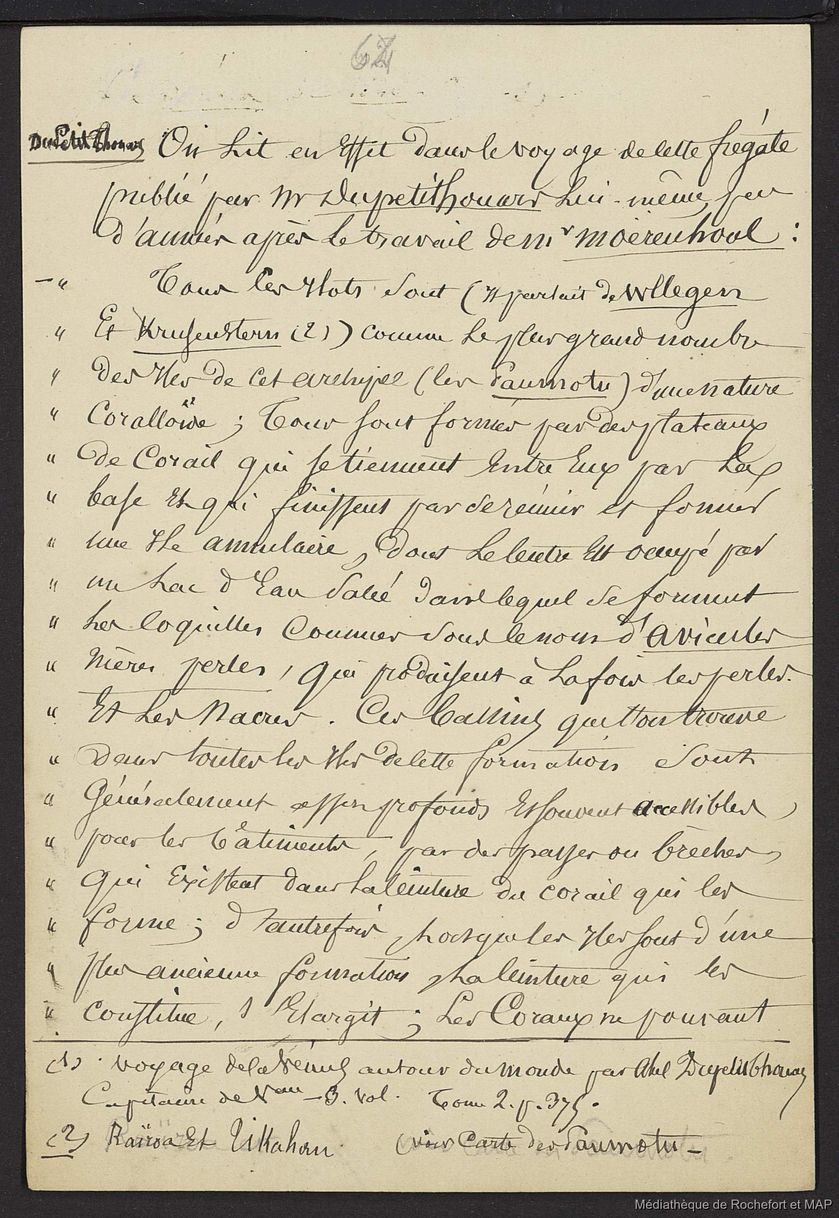 Quote this document Lesson, Pierre-Adolphe [accessed: 2026/1/29]. "Considération sur la formation des îles hautes et basses de l'Océanie (B172996201_Ms00053-10)" (Object Id: 158551). In Considération sur la formation des îles hautes et basses de l'Océanie (B172996201_Ms00053-10). ODSAS: https://www.odsas.net/object/158551.