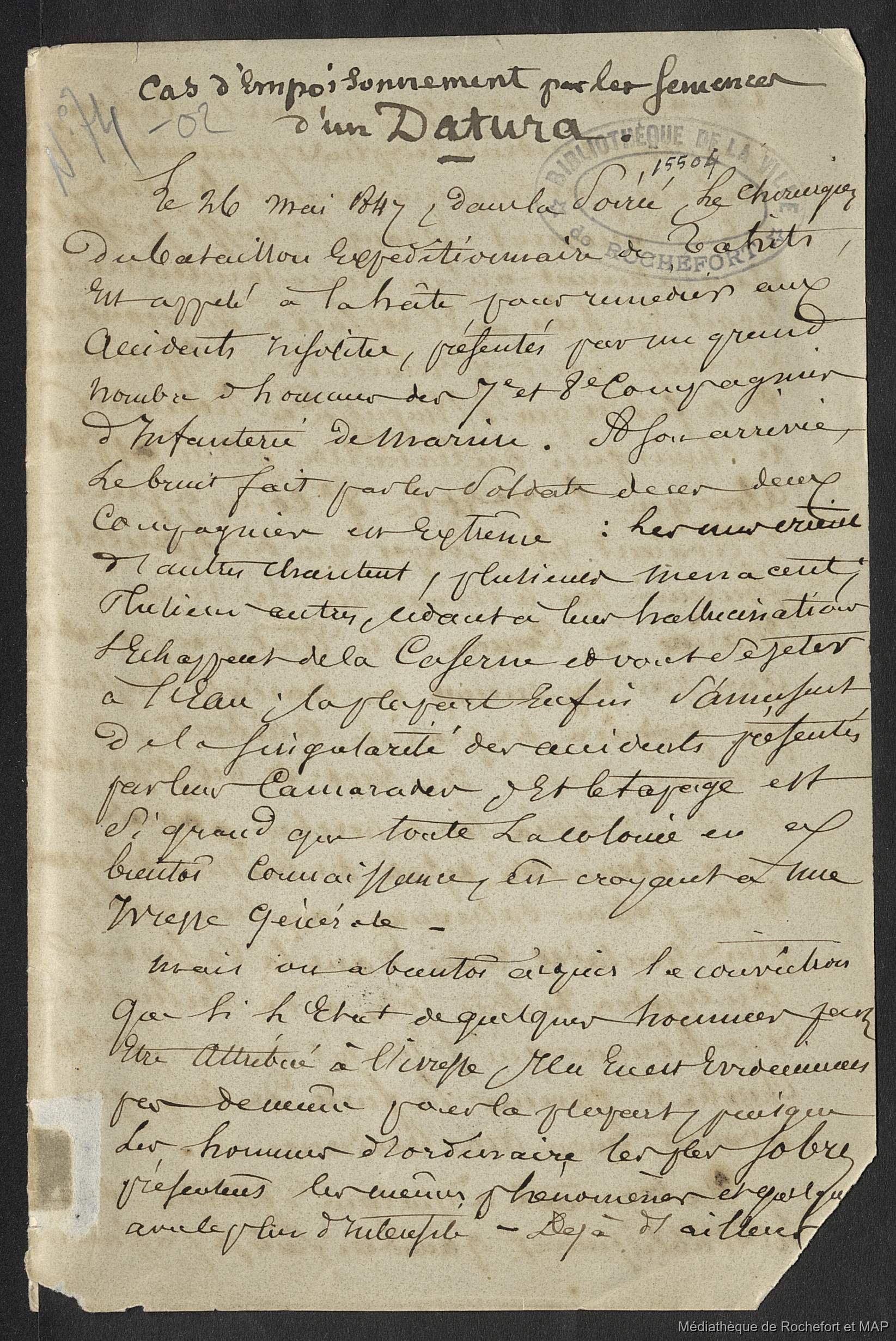 Lesson, Pierre-Adolphe [accessed: 2026/2/11]. "Cas d'empoisonnement par les semences d'un Datura (B172996201_Ms00074-2)" (Object Id: 159130). In