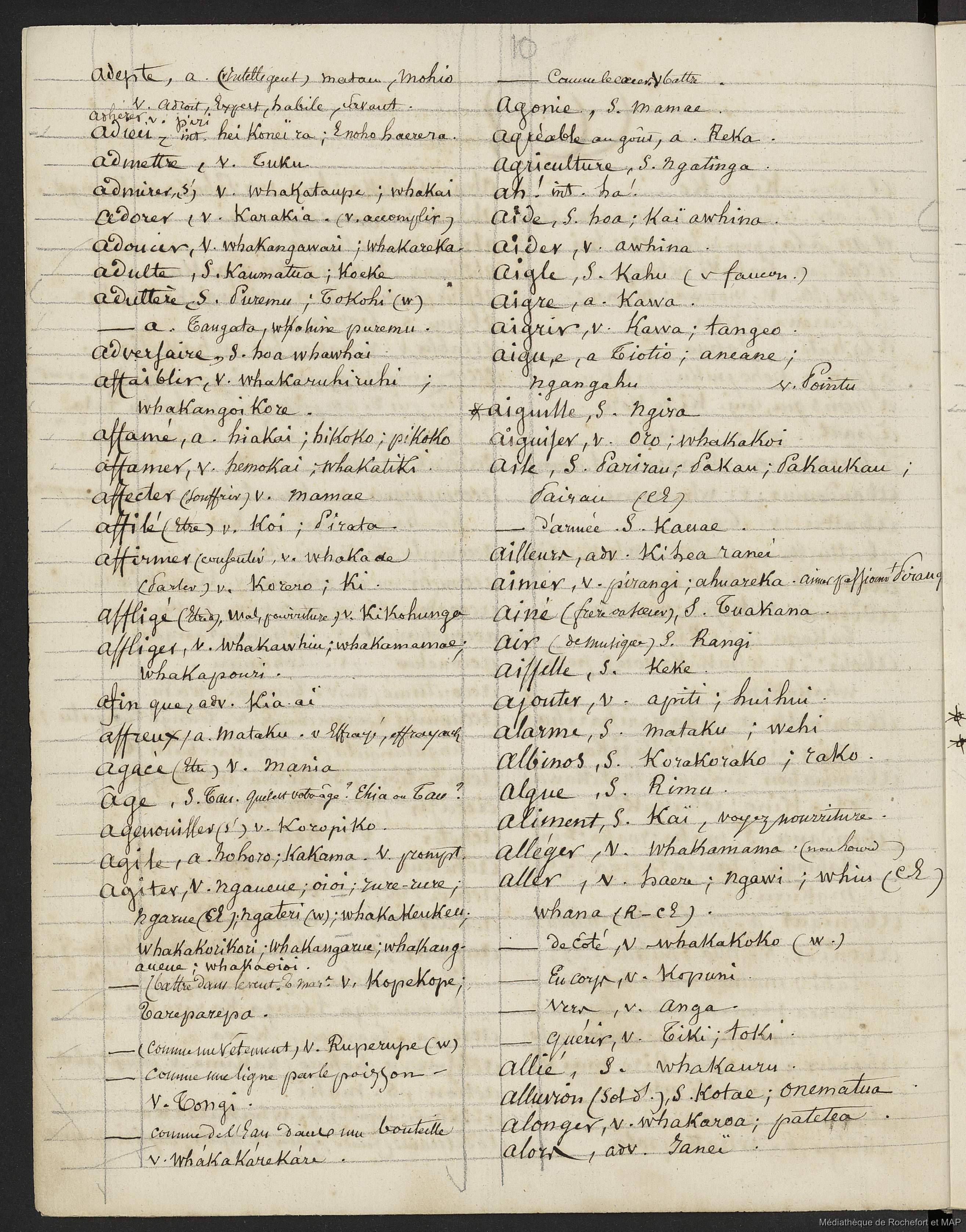 Lesson, Pierre-Adolphe [accessed: 2026/1/25]. "Dictionnaire Français-nouveau Zélandais (B172996201_Ms00076)" (Object Id: 159165). In