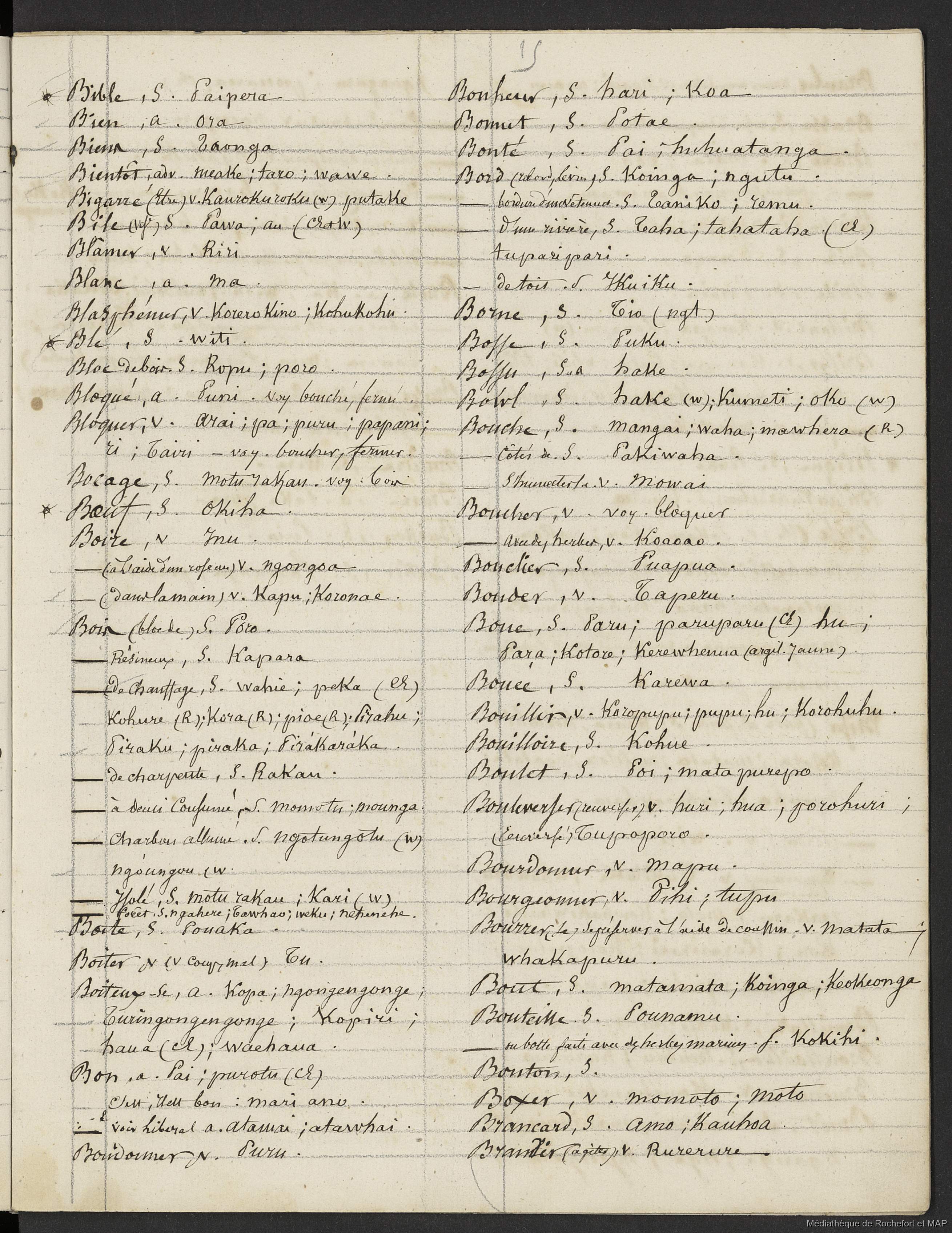 Quote this document Lesson, Pierre-Adolphe [accessed: 2026/1/25]. "Dictionnaire Français-nouveau Zélandais (B172996201_Ms00076)" (Object Id: 159170). In Dictionnaire Français-nouveau Zélandais (B172996201_Ms00076). ODSAS: https://www.odsas.net/object/159170.