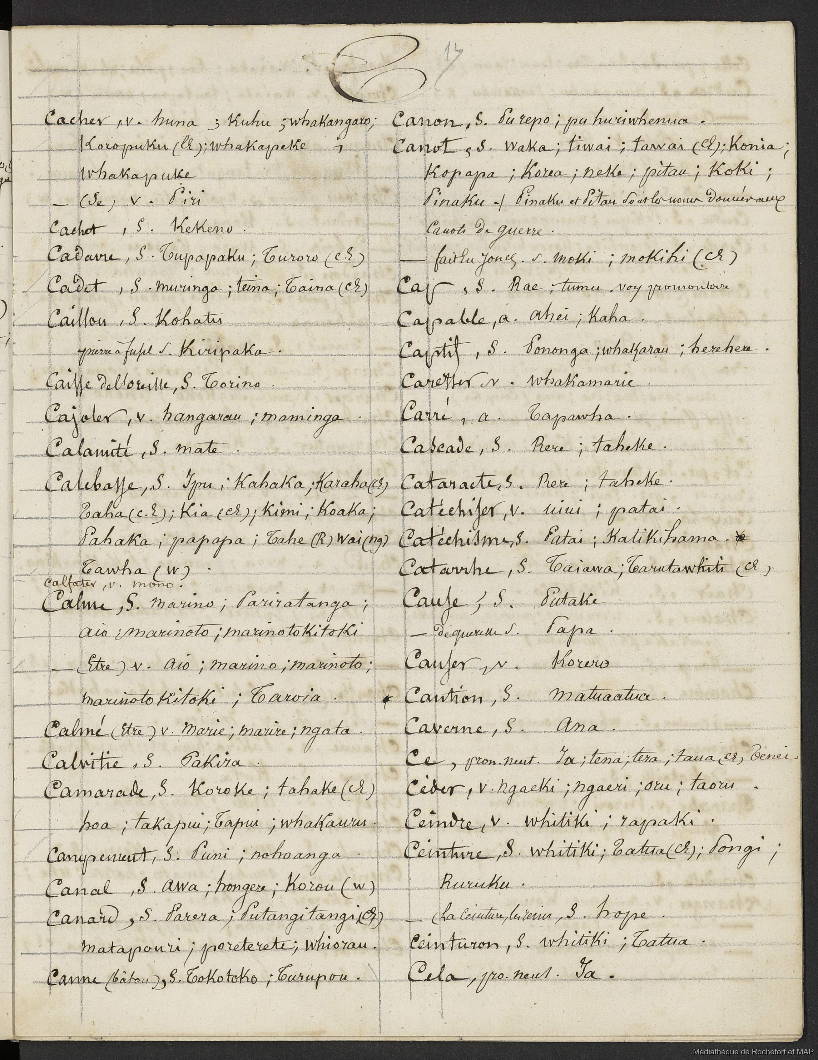 Quote this document Lesson, Pierre-Adolphe [accessed: 2026/1/25]. "Dictionnaire Français-nouveau Zélandais (B172996201_Ms00076)" (Object Id: 159172). In Dictionnaire Français-nouveau Zélandais (B172996201_Ms00076). ODSAS: https://www.odsas.net/object/159172.