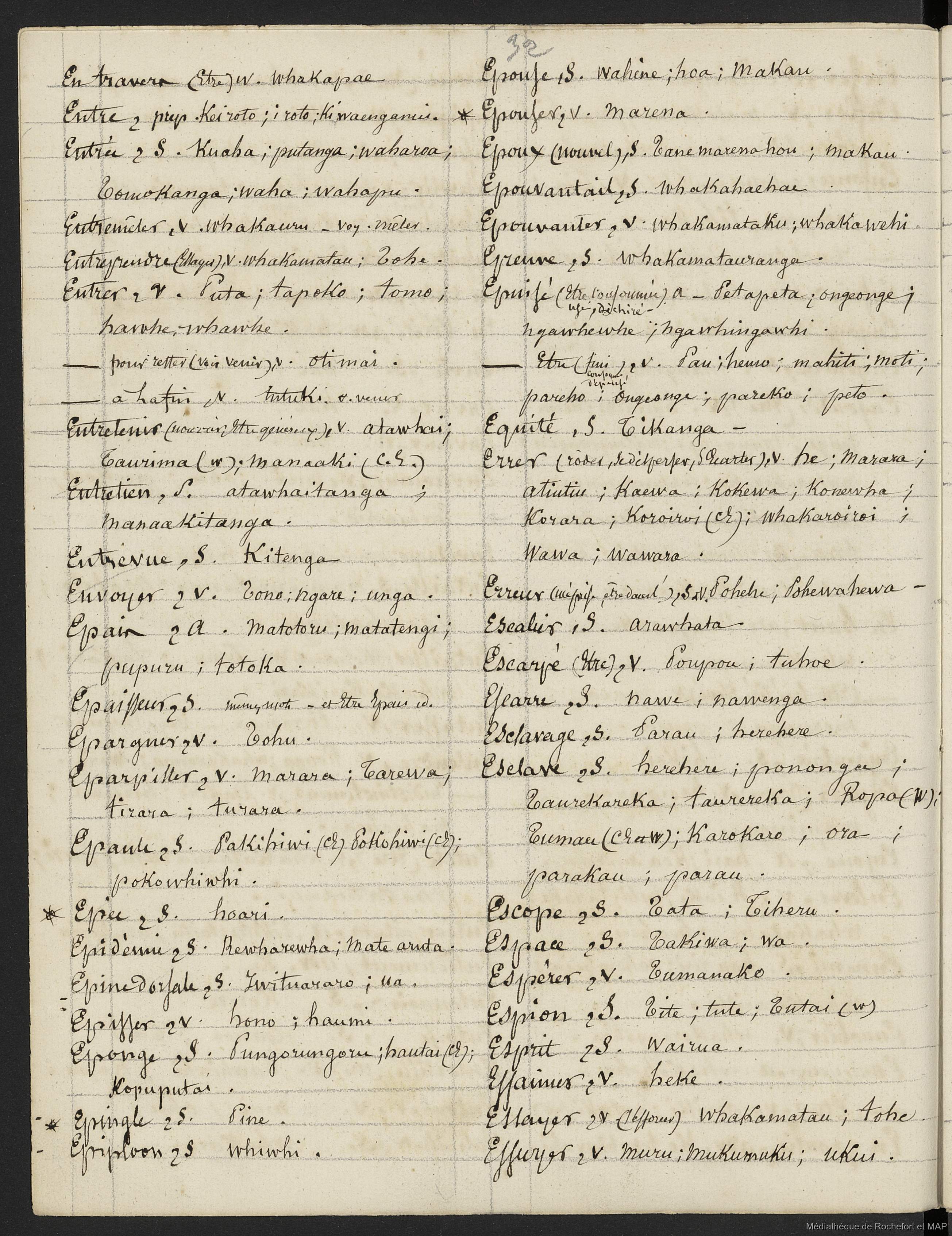 Quote this document Lesson, Pierre-Adolphe [accessed: 2026/1/26]. "Dictionnaire Français-nouveau Zélandais (B172996201_Ms00076)" (Object Id: 159187). In Dictionnaire Français-nouveau Zélandais (B172996201_Ms00076). ODSAS: https://www.odsas.net/object/159187.