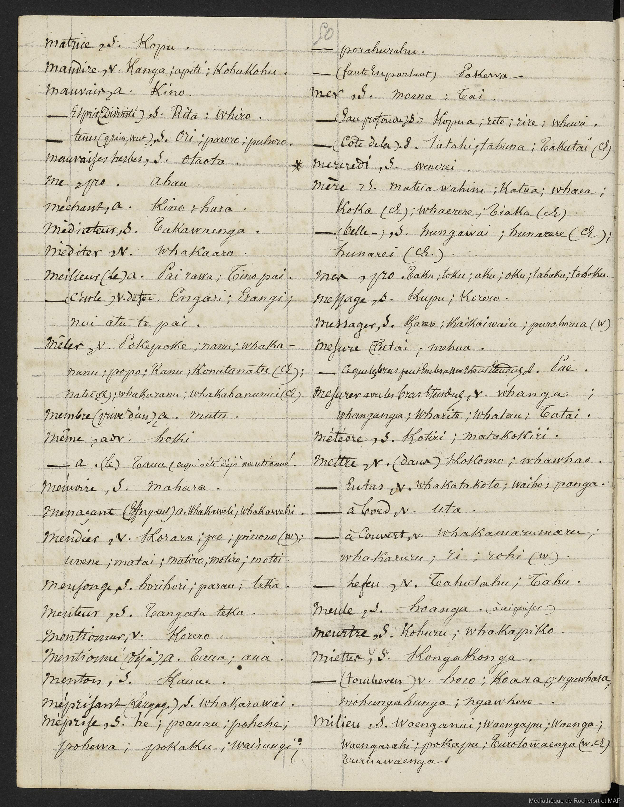 Lesson, Pierre-Adolphe [accessed: 2026/1/27]. "Dictionnaire Français-nouveau Zélandais (B172996201_Ms00076)" (Object Id: 159205). In