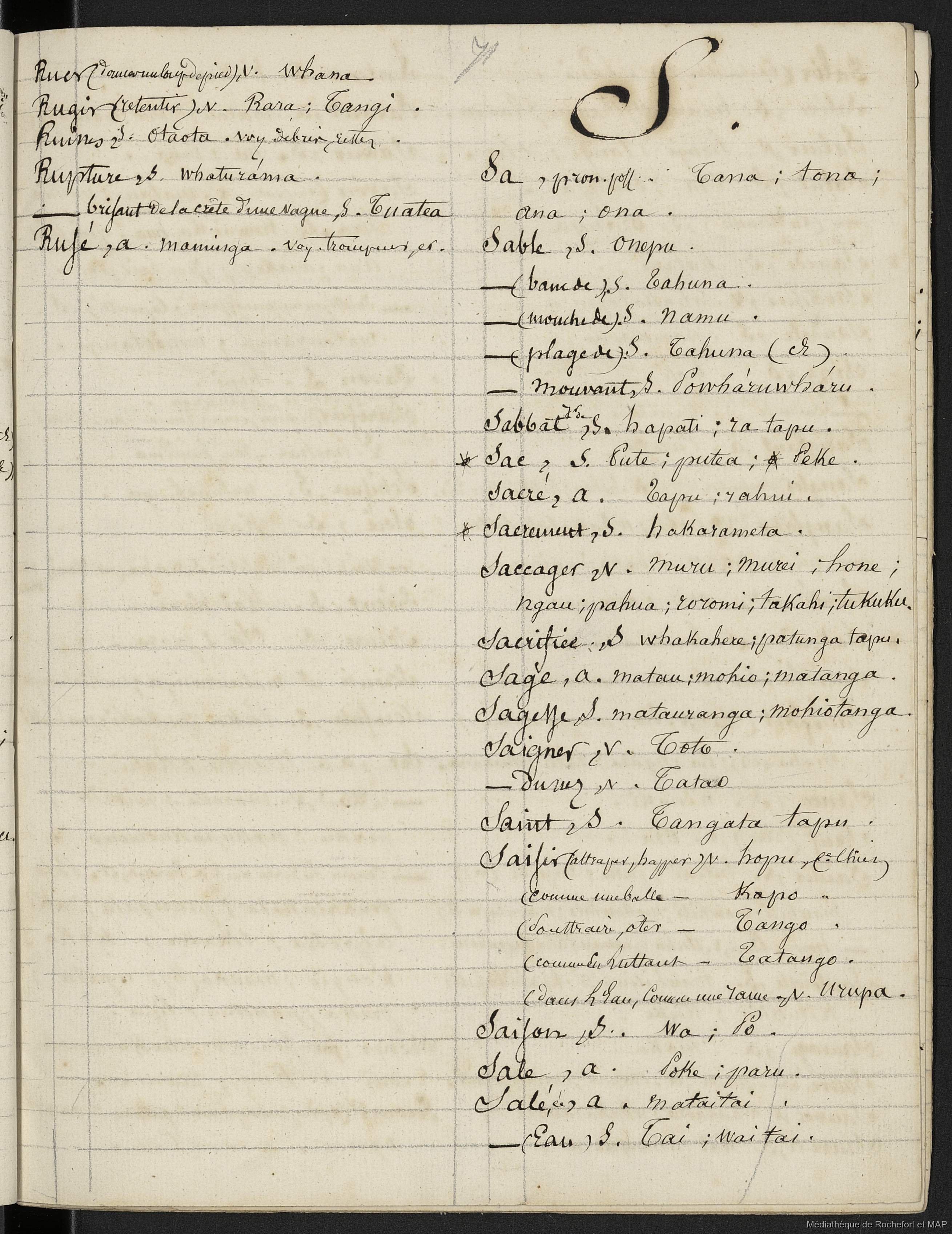 Lesson, Pierre-Adolphe [accessed: 2026/1/27]. "Dictionnaire Français-nouveau Zélandais (B172996201_Ms00076)" (Object Id: 159226). In