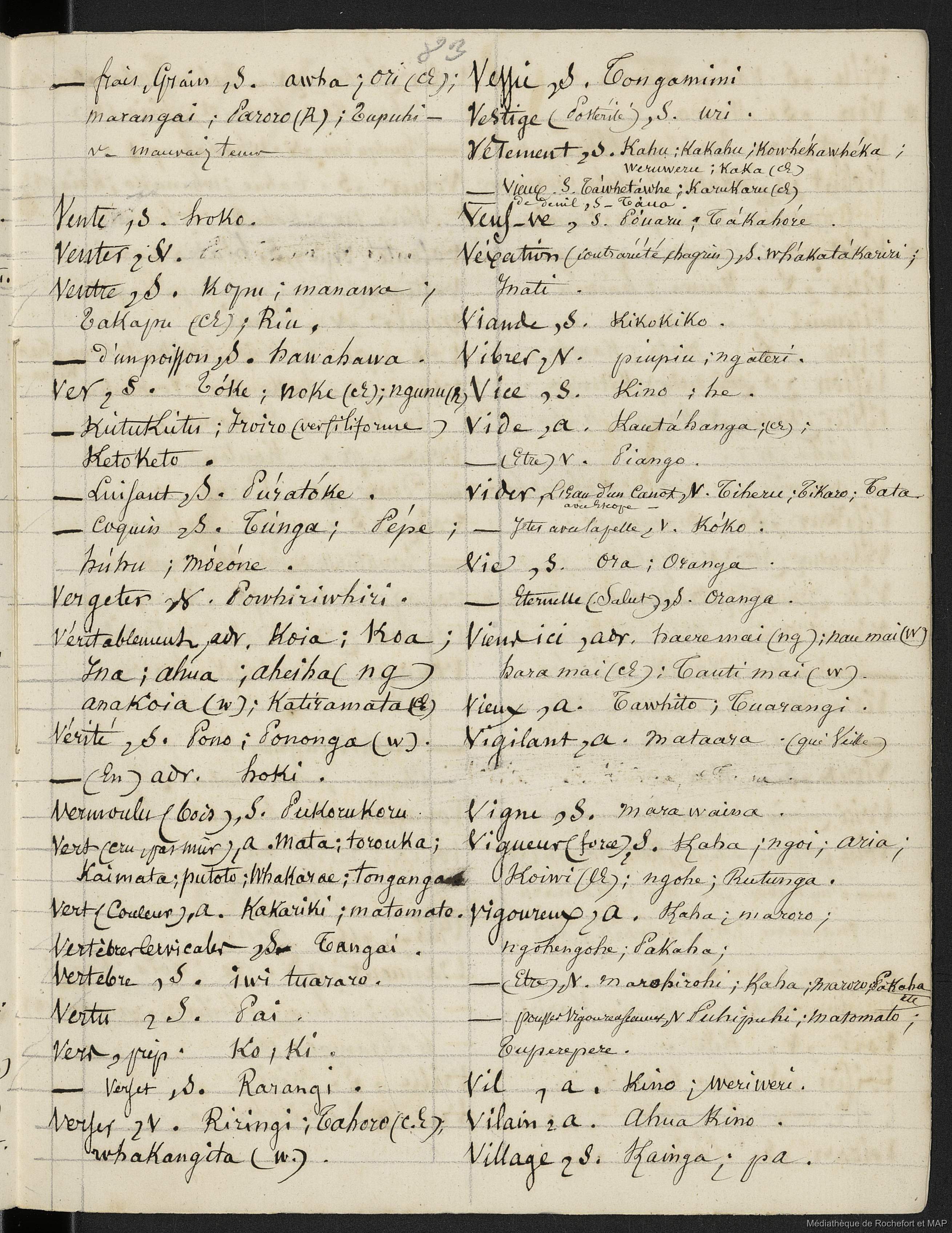 Lesson, Pierre-Adolphe [accessed: 2026/1/27]. "Dictionnaire Français-nouveau Zélandais (B172996201_Ms00076)" (Object Id: 159238). In