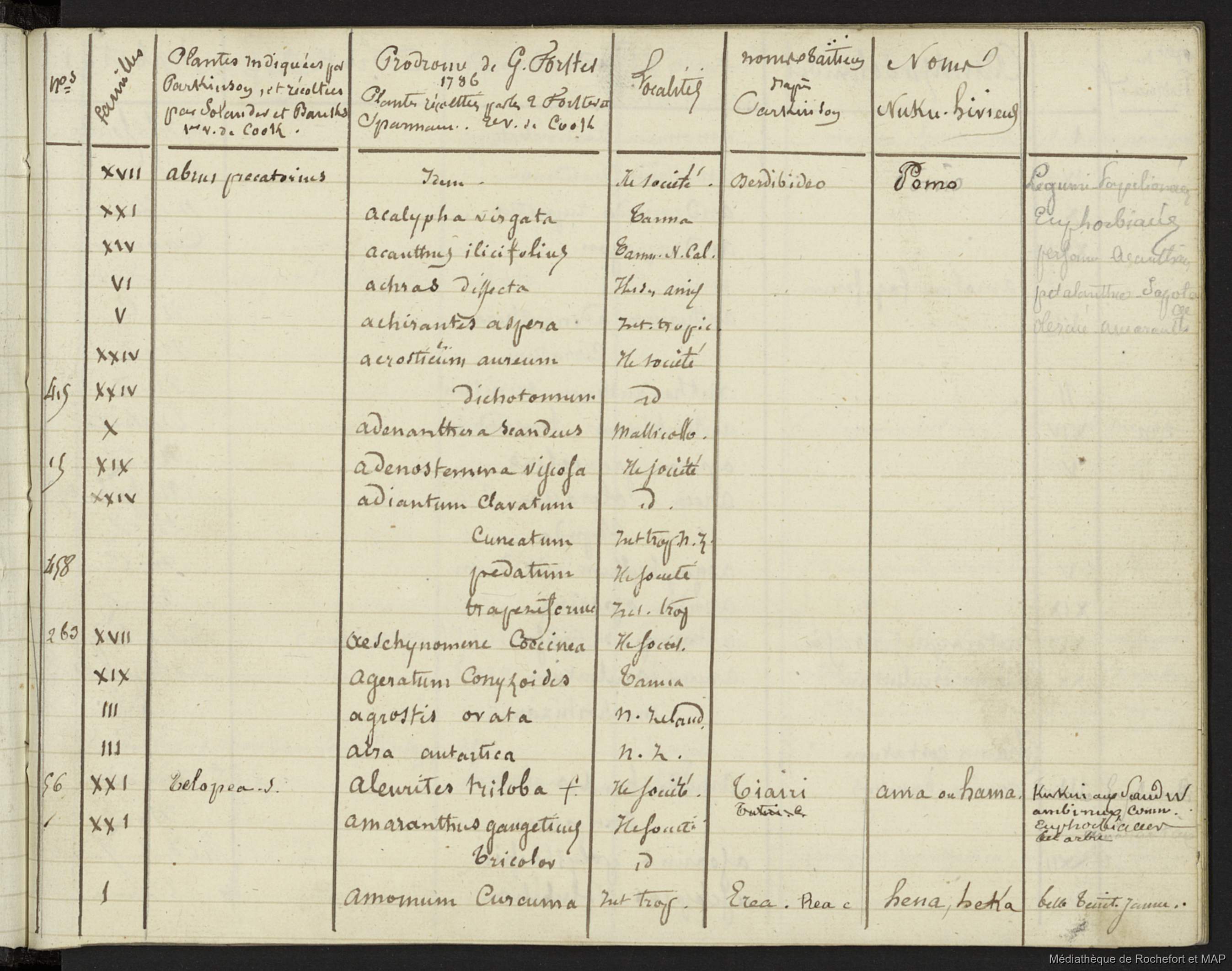 Lesson, Pierre-Adolphe [accessed: 2026/1/25]. "Plantes indiquées par Parkinson et récoltées par Banks et Solander (B172996201_Ms00114)" (Object Id: 159450). In
