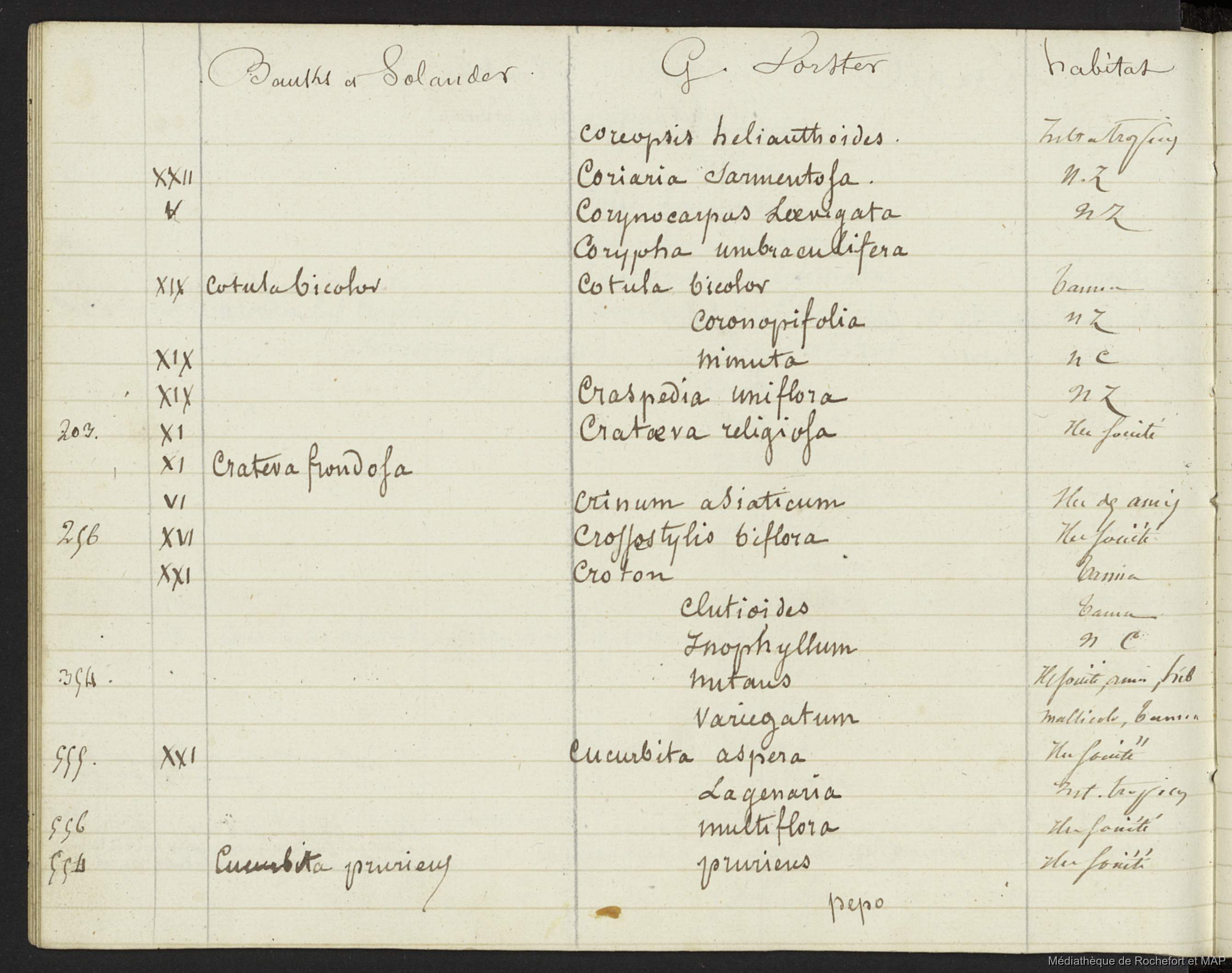Quote this document Lesson, Pierre-Adolphe [accessed: 2026/1/26]. "Plantes indiquées par Parkinson et récoltées par Banks et Solander (B172996201_Ms00114)" (Object Id: 159462). In Plantes indiquées par Parkinson et récoltées par Banks et Solander (B172996201_Ms00114). ODSAS: https://www.odsas.net/object/159462.