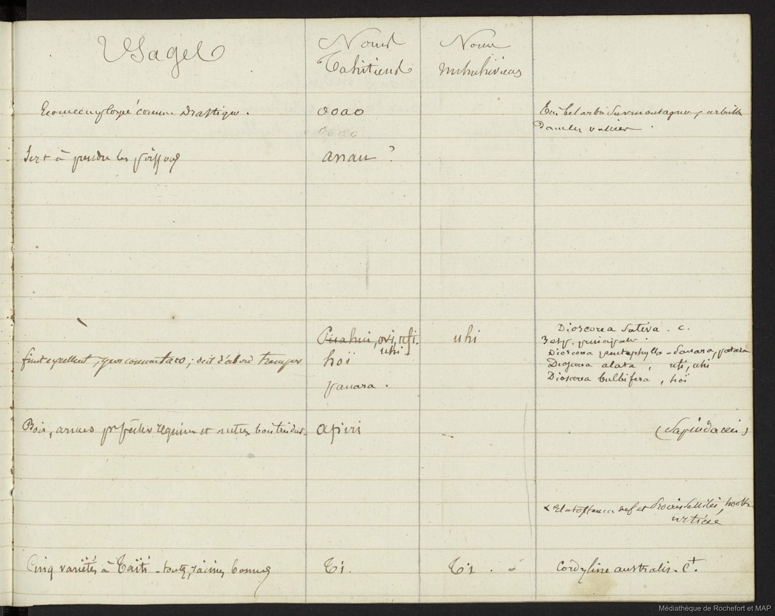 Lesson, Pierre-Adolphe [accessed: 2026/1/26]. "Plantes indiquées par Parkinson et récoltées par Banks et Solander (B172996201_Ms00114)" (Object Id: 159467). In