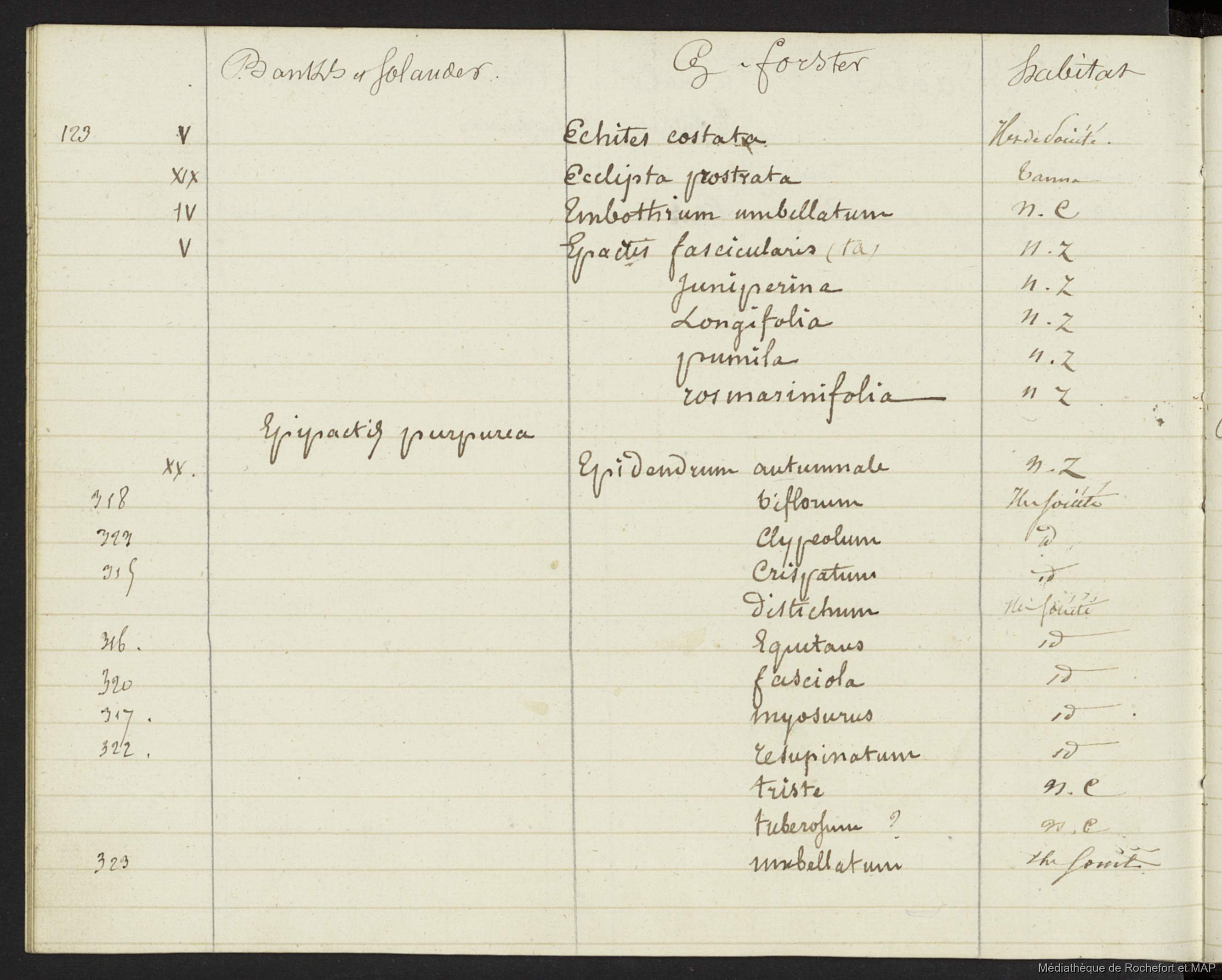 Lesson, Pierre-Adolphe [accessed: 2026/1/26]. "Plantes indiquées par Parkinson et récoltées par Banks et Solander (B172996201_Ms00114)" (Object Id: 159470). In