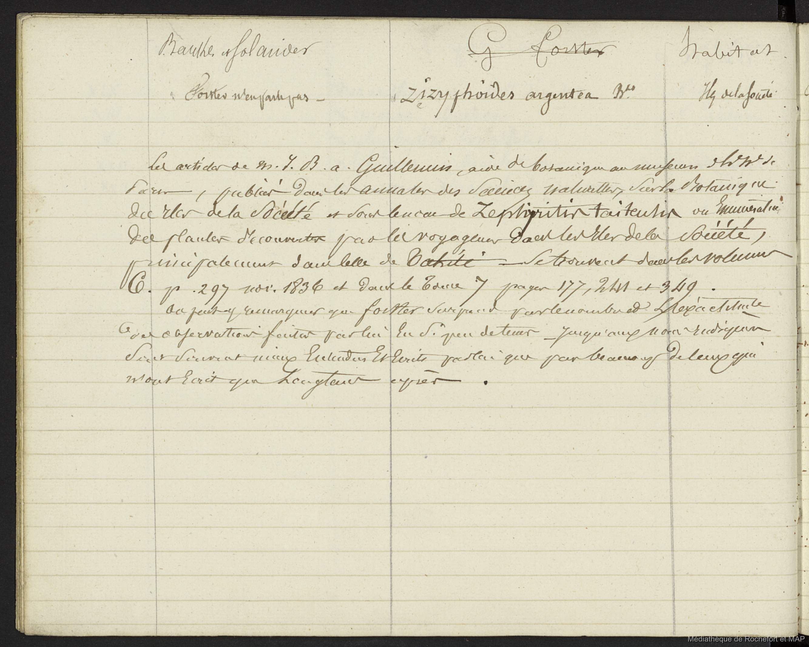 Lesson, Pierre-Adolphe [accessed: 2026/2/3]. "Plantes indiquées par Parkinson et récoltées par Banks et Solander (B172996201_Ms00114)" (Object Id: 159532). In