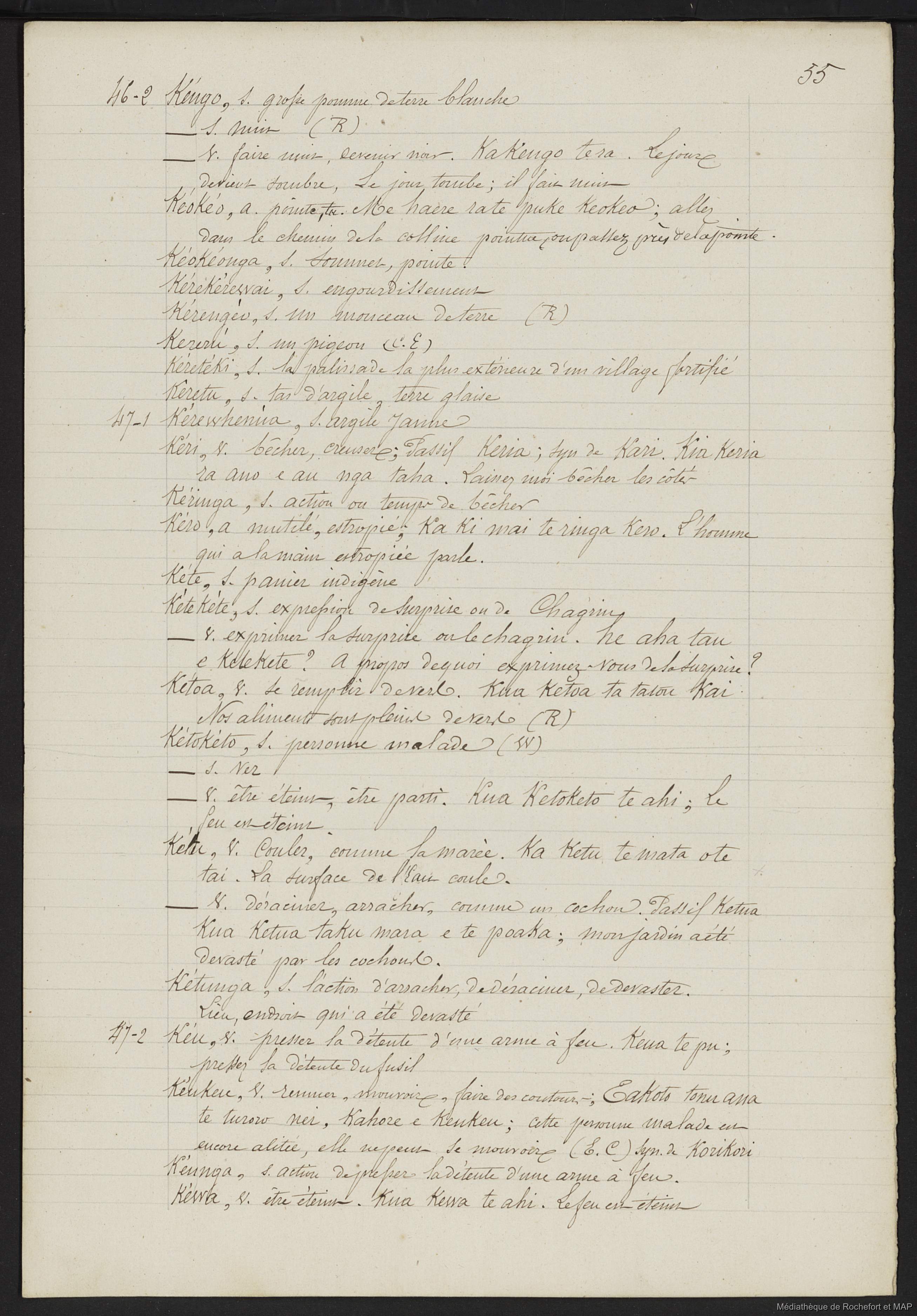 Quote this document Lesson, Pierre-Adolphe [accessed: 2026/2/10]. "Dictionnaire Français-nouveau Zélandais (B172996201_Ms00129)" (Object Id: 159623). In Dictionnaire Français-nouveau Zélandais (B172996201_Ms00129). ODSAS: https://www.odsas.net/object/159623.