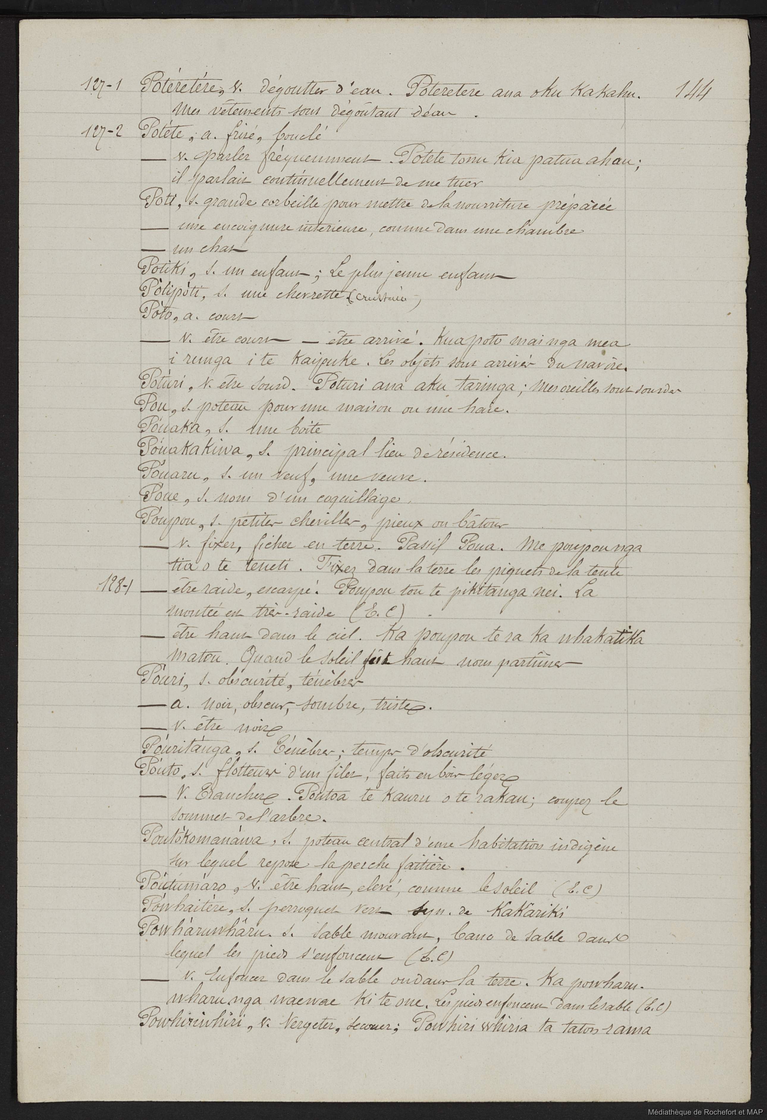 Lesson, Pierre-Adolphe [accessed: 2026/2/10]. "Dictionnaire Français-nouveau Zélandais (B172996201_Ms00129)" (Object Id: 159712). In