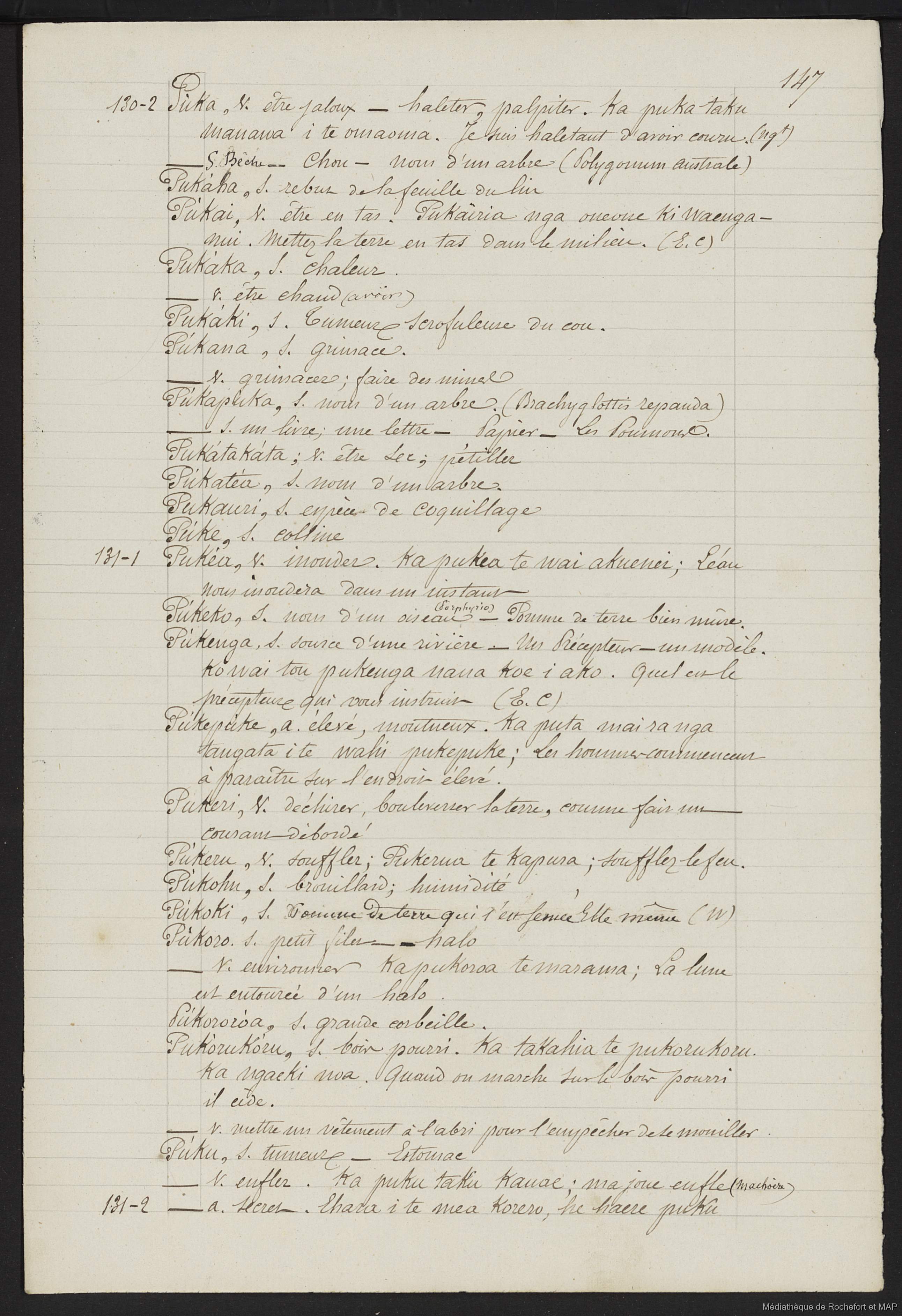 Lesson, Pierre-Adolphe [accessed: 2026/2/10]. "Dictionnaire Français-nouveau Zélandais (B172996201_Ms00129)" (Object Id: 159715). In