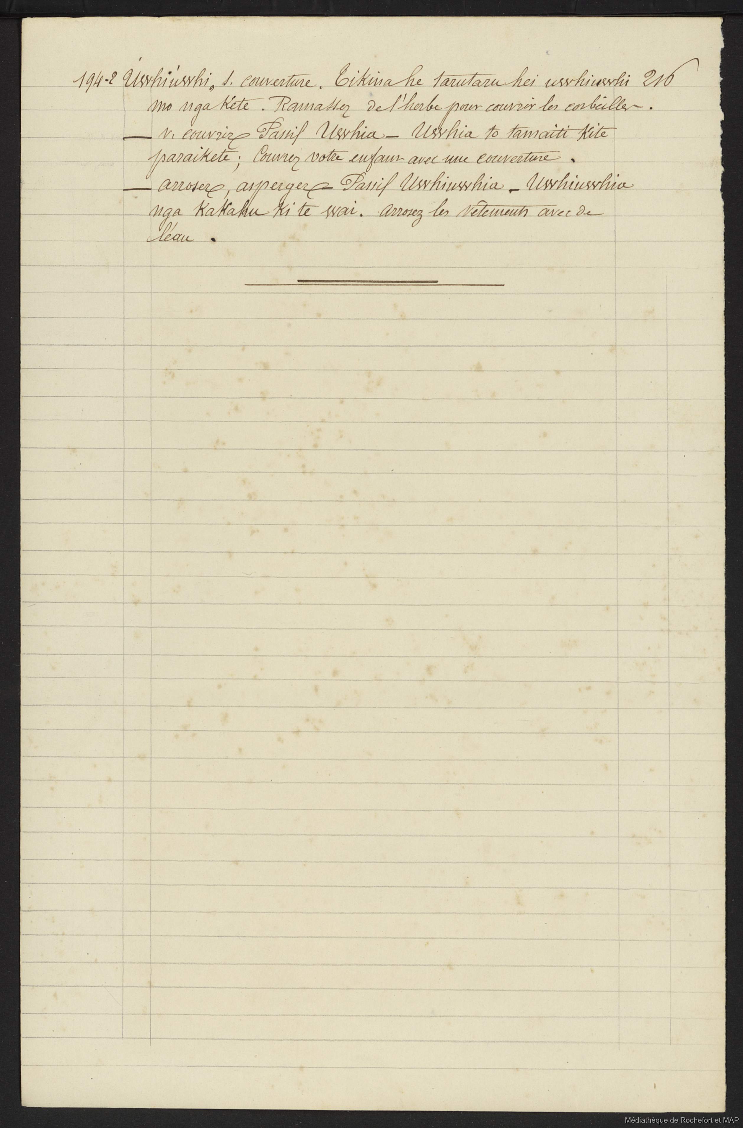 Lesson, Pierre-Adolphe [accessed: 2026/2/10]. "Dictionnaire Français-nouveau Zélandais (B172996201_Ms00129)" (Object Id: 159785). In