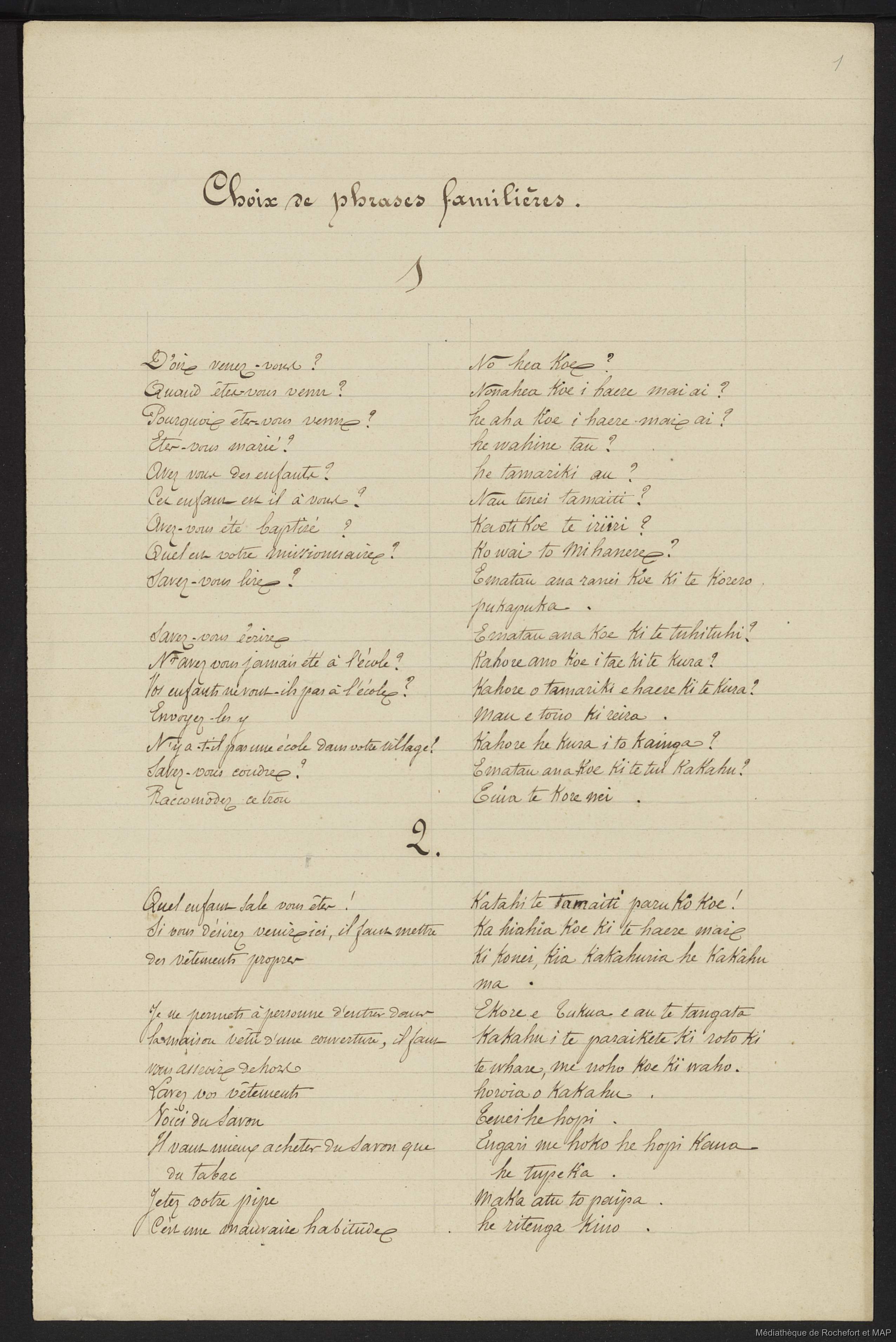 Lesson, Pierre-Adolphe [accessed: 2026/4/18]. "Dictionnaire Français-nouveau Zélandais (B172996201_Ms00129)" (Object Id: 159822). In