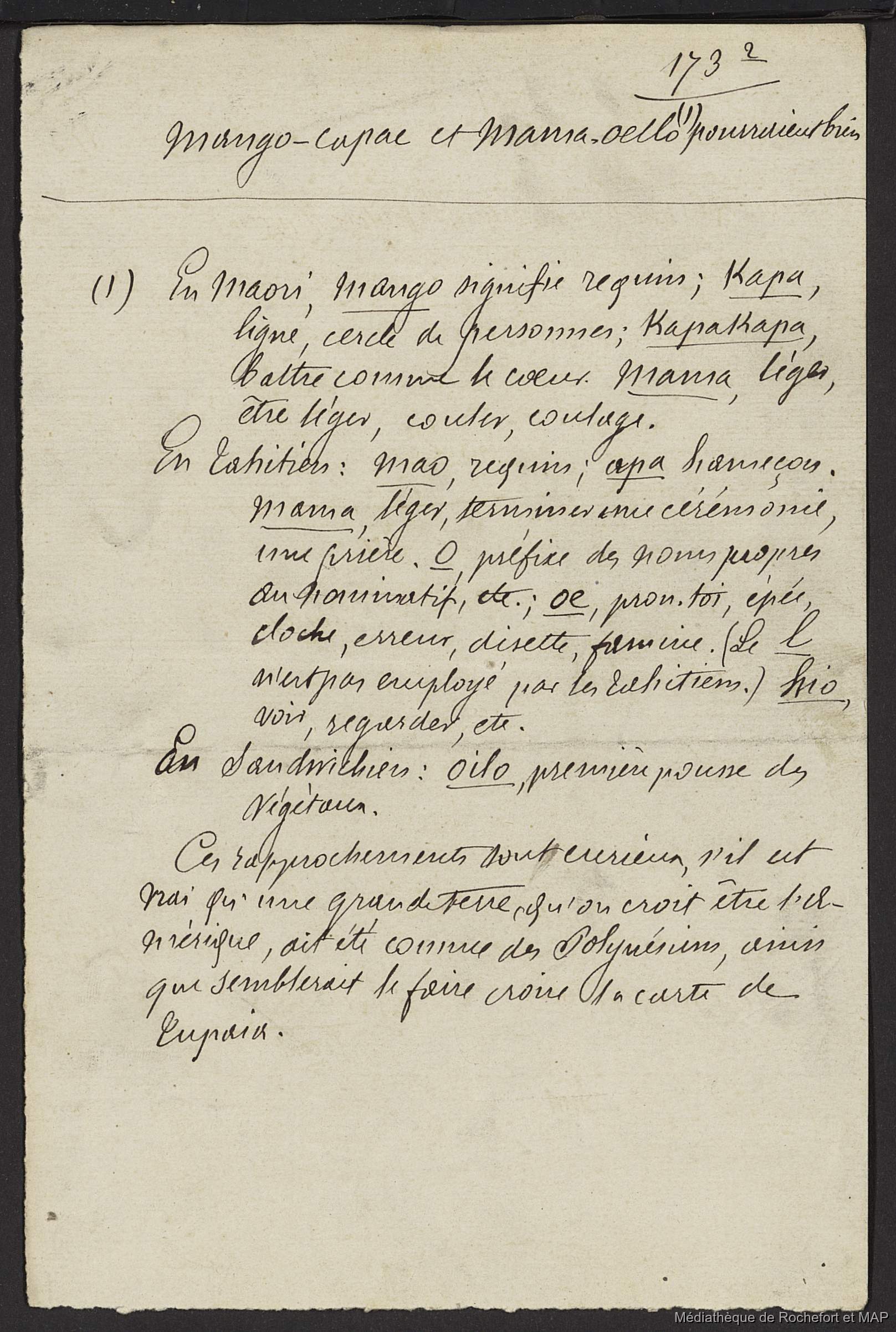 Quote this document Lesson, Pierre-Adolphe [accessed: 2026/2/3]. "Les Polynésiens (B172996201_Ms00150_2)" (Object Id: 161353). In Les Polynésiens (B172996201_Ms00150_2). ODSAS: https://www.odsas.net/object/161353.