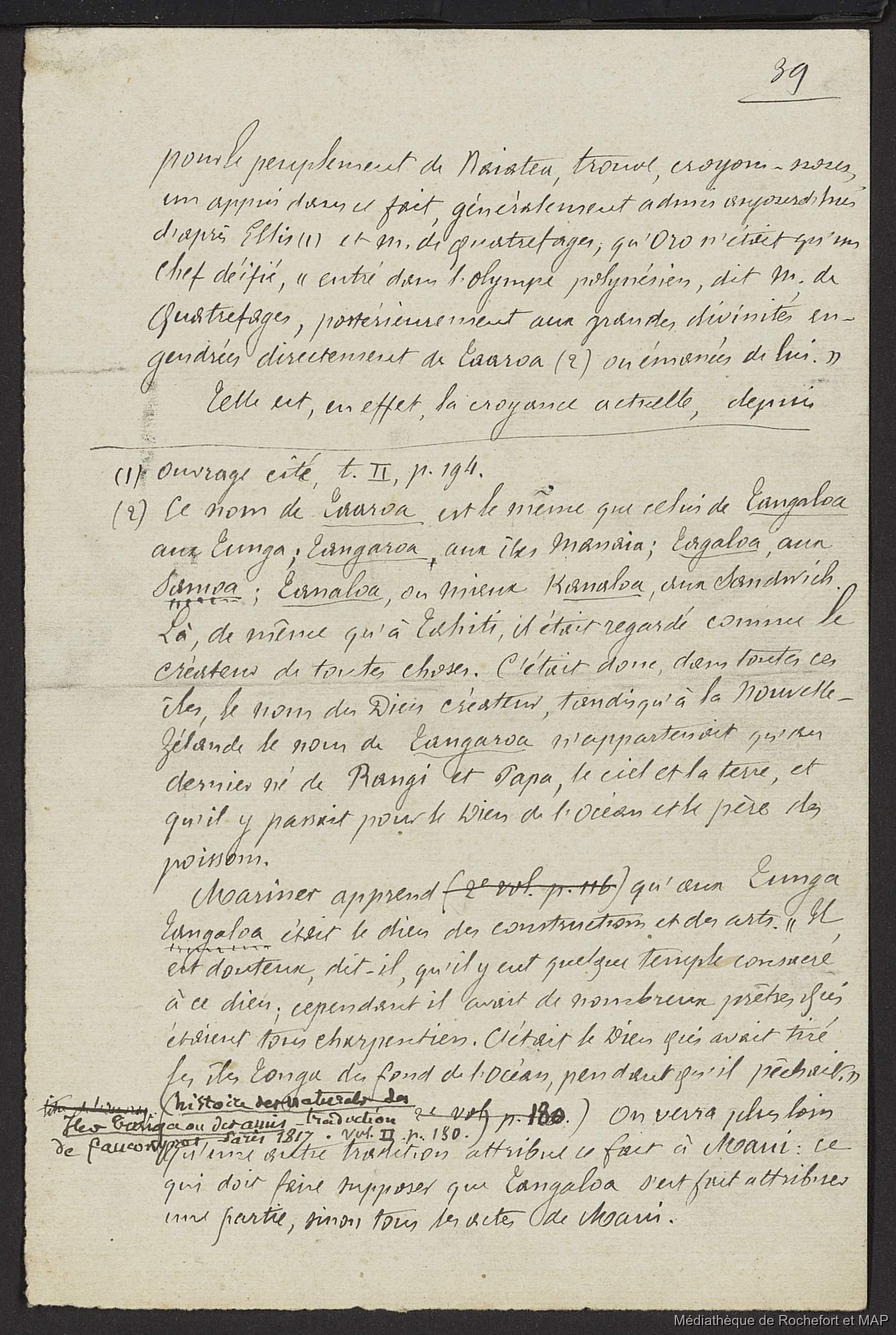 Quote this document Lesson, Pierre-Adolphe [accessed: 2026/2/3]. "Les Polynésiens (B172996201_Ms00150_2)" (Object Id: 161446). In Les Polynésiens (B172996201_Ms00150_2). ODSAS: https://www.odsas.net/object/161446.