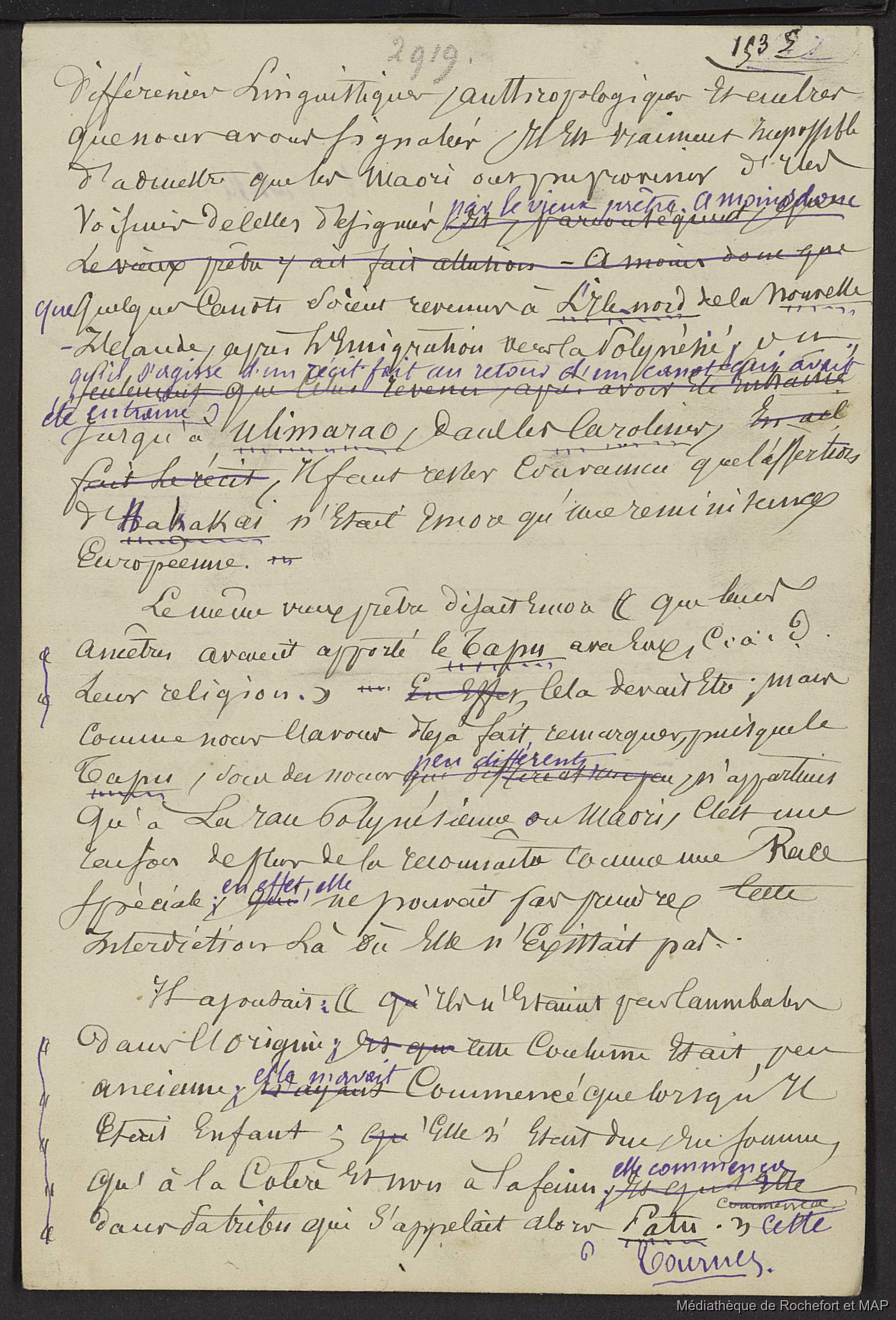 Quote this document Lesson, Pierre-Adolphe [accessed: 2026/2/11]. "Les Polynésiens (B172996201_Ms00153_3)" (Object Id: 162496). In Les Polynésiens (B172996201_Ms00153_3). ODSAS: https://www.odsas.net/object/162496.
