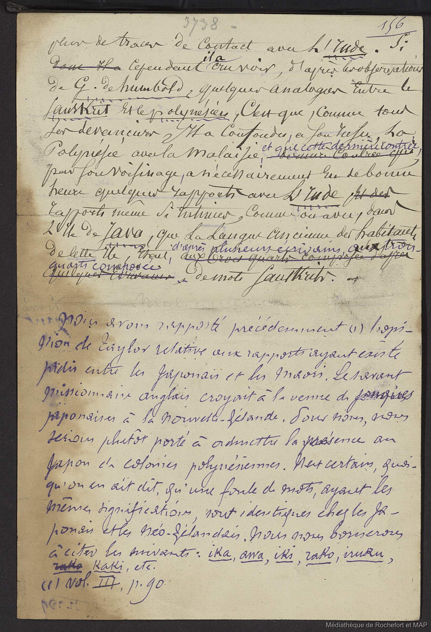 Quote this document Lesson, Pierre-Adolphe [accessed: 2026/2/3]. "Les Polynésiens (B172996201_Ms00155_4)" (Object Id: 163293). In Les Polynésiens (B172996201_Ms00155_4). ODSAS: https://www.odsas.net/object/163293.