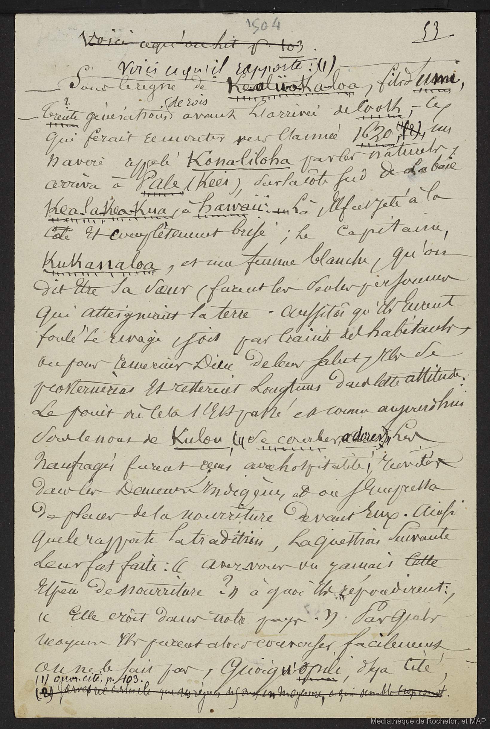 Lesson, Pierre-Adolphe [accessed: 2026/1/31]. "Théorie des migrations. Iles Sandwich ou Iles Hawaii (B172996201_Ms00159)" (Object Id: 163657). In