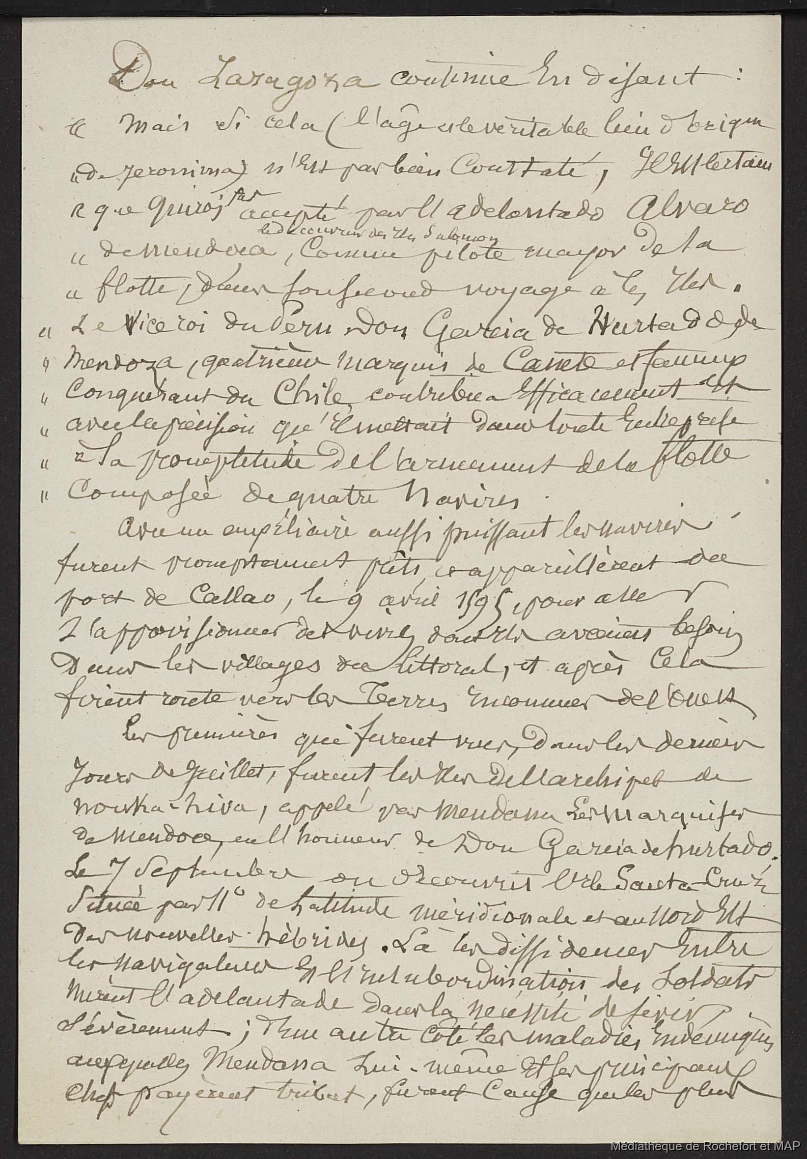 Lesson, Pierre-Adolphe [accessed: 2026/1/17]. "Documents sur Pedro Fernandez Quiros (B172996201_Ms00164)" (Object Id: 163917). In