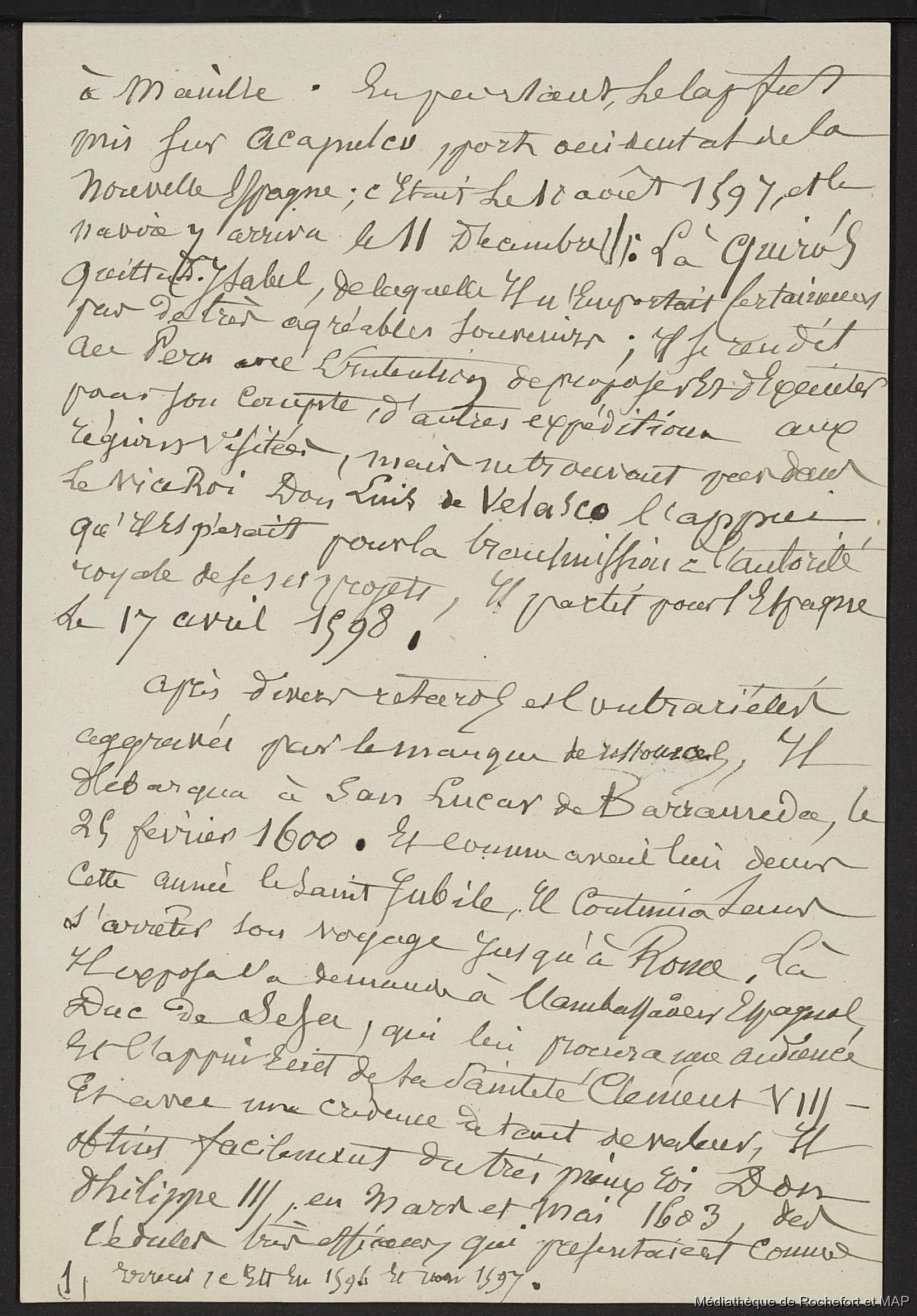 Quote this document Lesson, Pierre-Adolphe [accessed: 2026/1/18]. "Documents sur Pedro Fernandez Quiros (B172996201_Ms00164)" (Object Id: 163921). In Documents sur Pedro Fernandez Quiros (B172996201_Ms00164). ODSAS: https://www.odsas.net/object/163921.
