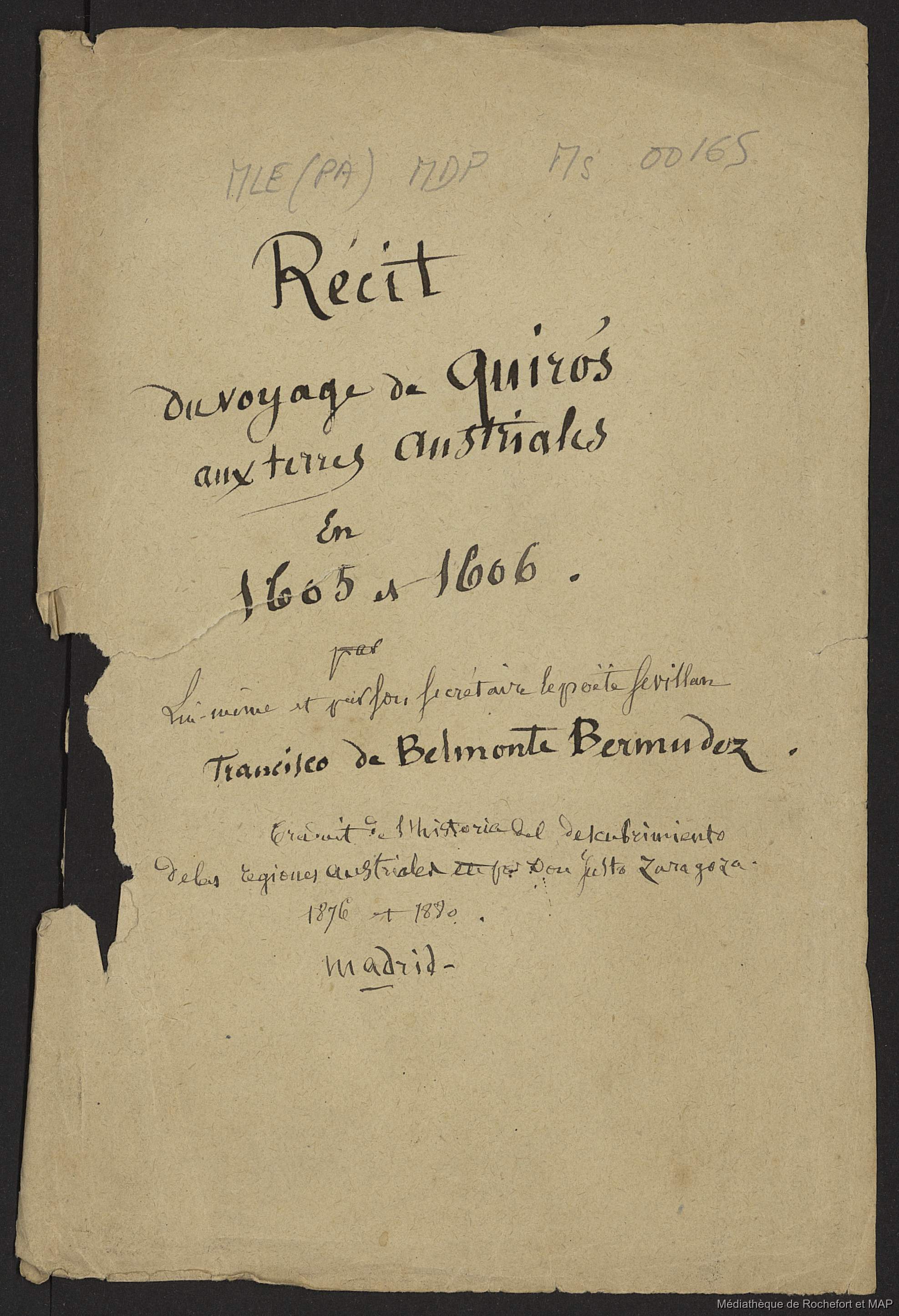 Récit du voyage de Quiros aux terres austriales en 1605 et 1606 (B172996201_Ms00165)