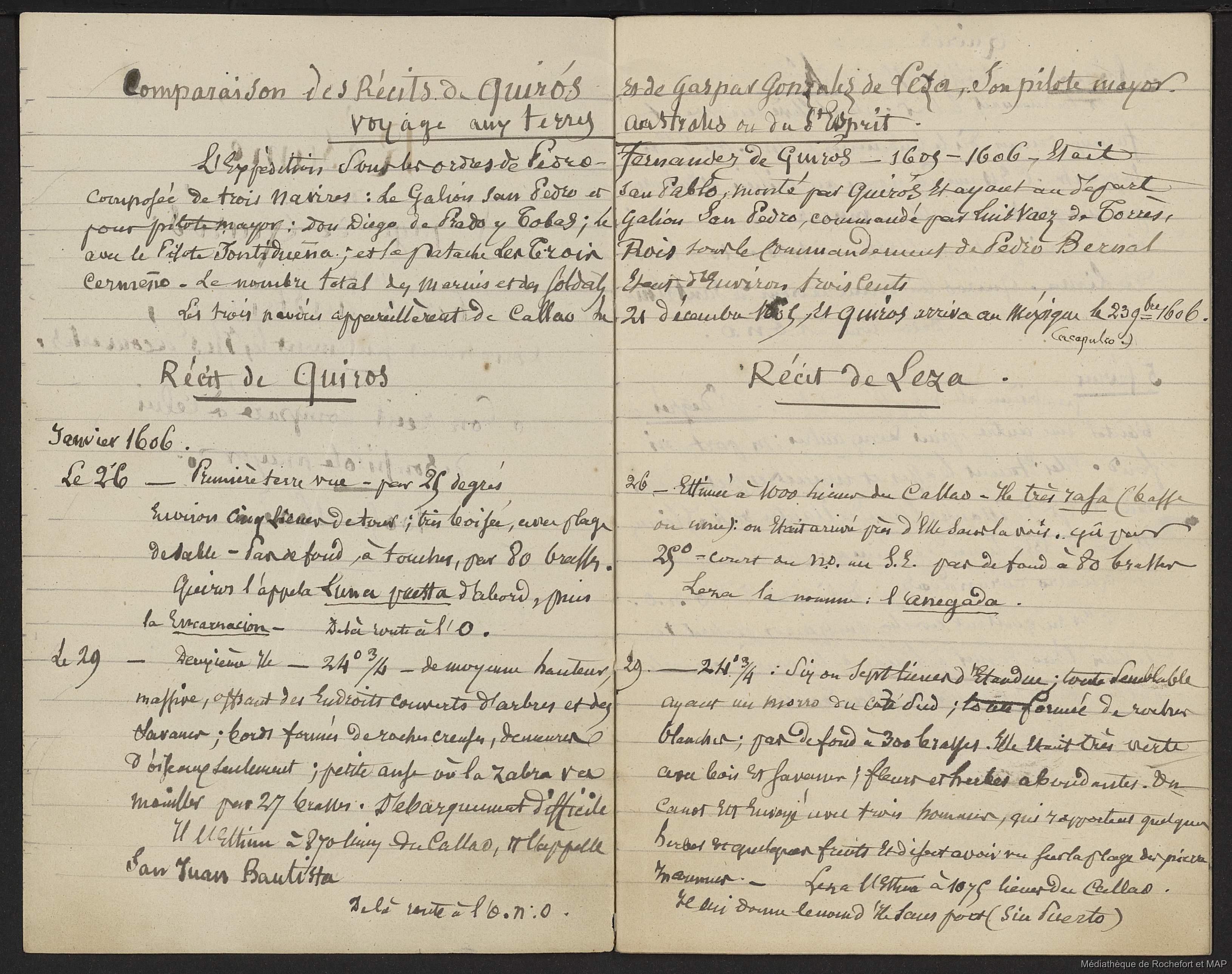 Lesson, Pierre-Adolphe [accessed: 2026/2/4]. "Récit du voyage de Quiros aux terres austriales en 1605 et 1606 (B172996201_Ms00165)" (Object Id: 164022). In
