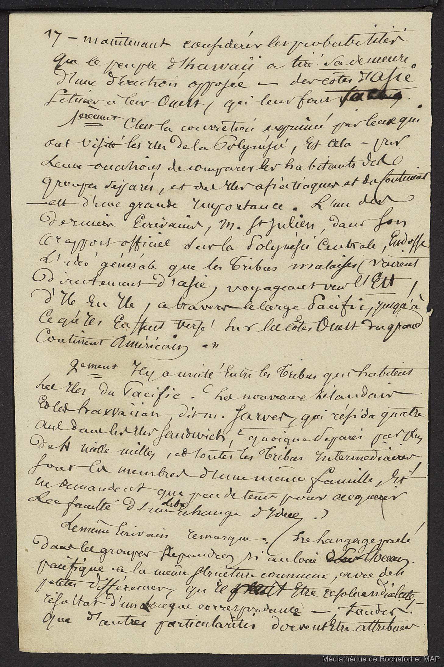 Quote this document Lesson, Pierre-Adolphe [accessed: 2026/2/11]. "Origine des polynésiens (B172996201_Ms00168)" (Object Id: 164496). In Origine des polynésiens (B172996201_Ms00168). ODSAS: https://www.odsas.net/object/164496.