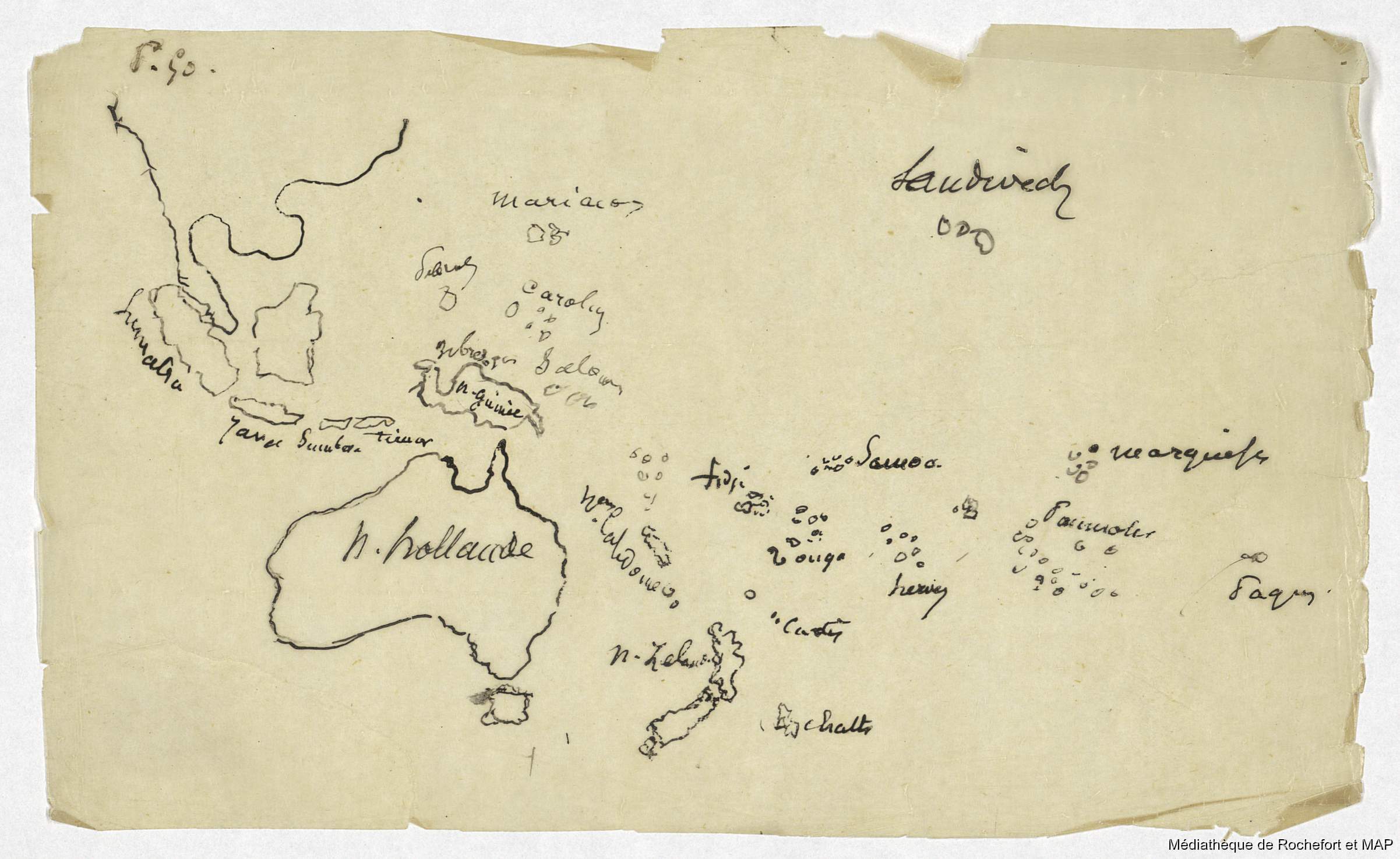 Lesson, Pierre-Adolphe [accessed: 2026/2/10]. "Théorie des migrations. 2ème théorie : Provenance asiatique des Polynésiens (ouest à Est) (B172996201_Ms00170)" (Object Id: 164536). In