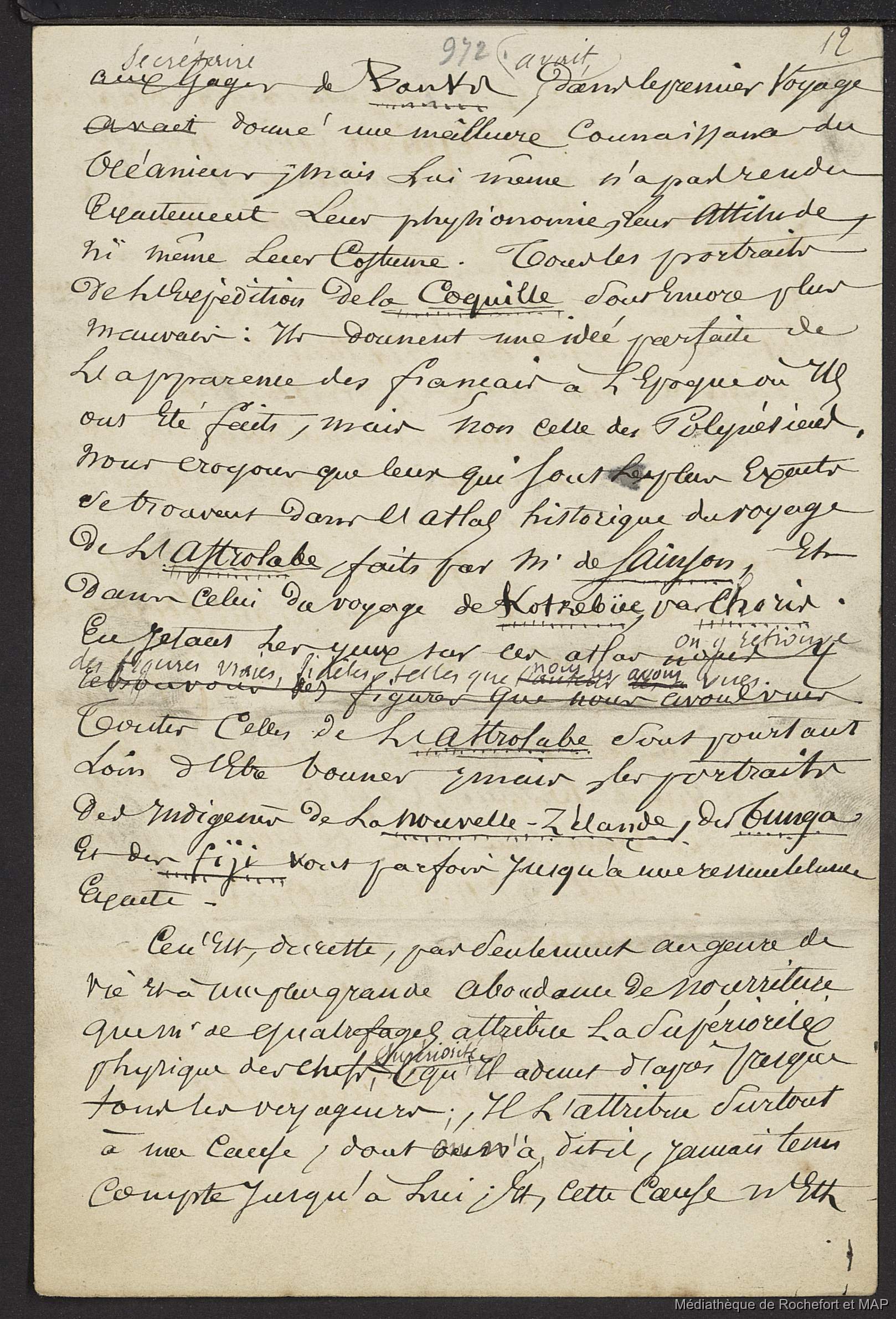 Théorie des migrations. Caractères anthropologiques des Polynésiens. (B172996201_Ms00176) / Théorie des migrations. Caractères anthropologiques des Polynésiens. (B172996201_Ms00176) / Lesson, Pierre-Adolphe /