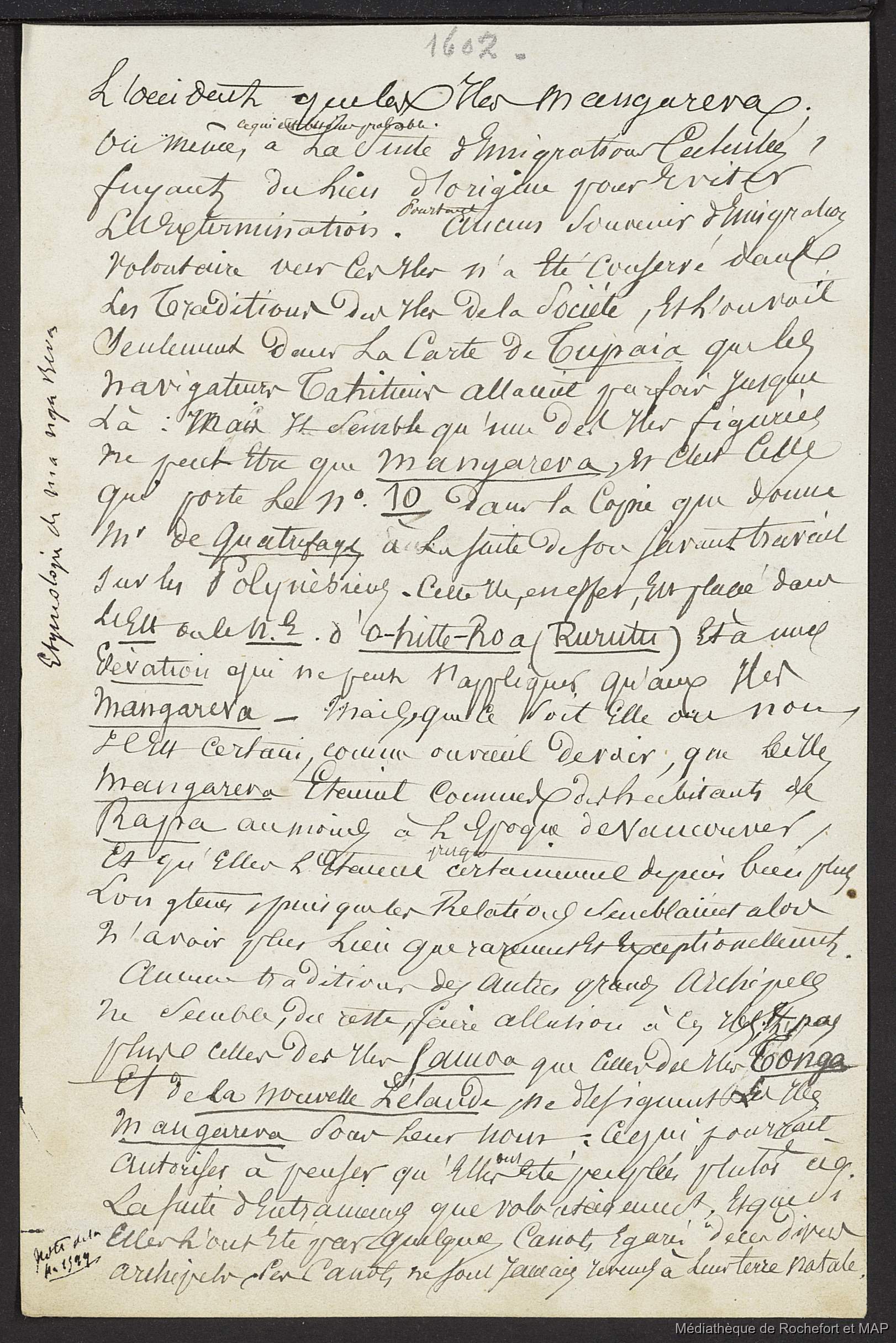 Quote this document Lesson, Pierre-Adolphe [accessed: 2026/1/31]. "Théorie de migrations. Iles Marquises, Paumoutu, Mangareva, Pâques. (B172996201_Ms00179)" (Object Id: 165462). In Théorie de migrations. Iles Marquises, Paumoutu, Mangareva, Pâques. (B172996201_Ms00179). ODSAS: https://www.odsas.net/object/165462.