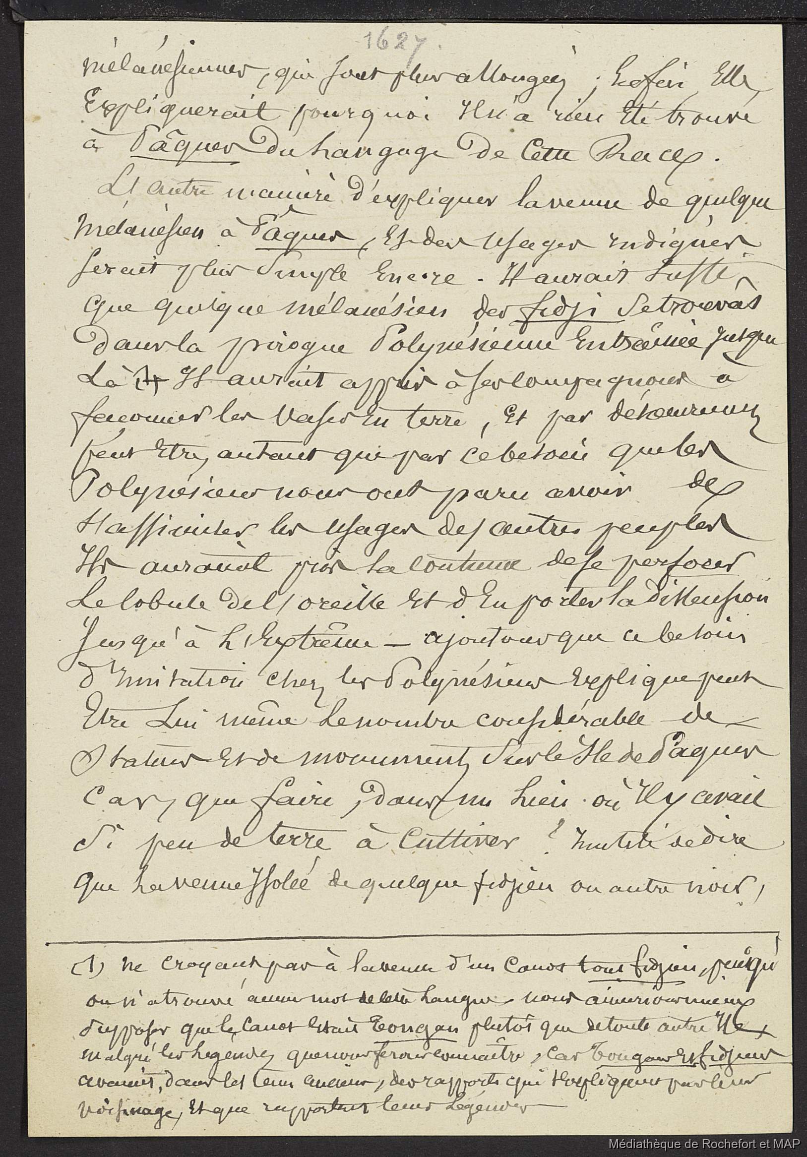 Quote this document Lesson, Pierre-Adolphe [accessed: 2026/1/31]. "Théorie de migrations. Iles Marquises, Paumoutu, Mangareva, Pâques. (B172996201_Ms00179)" (Object Id: 165472). In Théorie de migrations. Iles Marquises, Paumoutu, Mangareva, Pâques. (B172996201_Ms00179). ODSAS: https://www.odsas.net/object/165472.