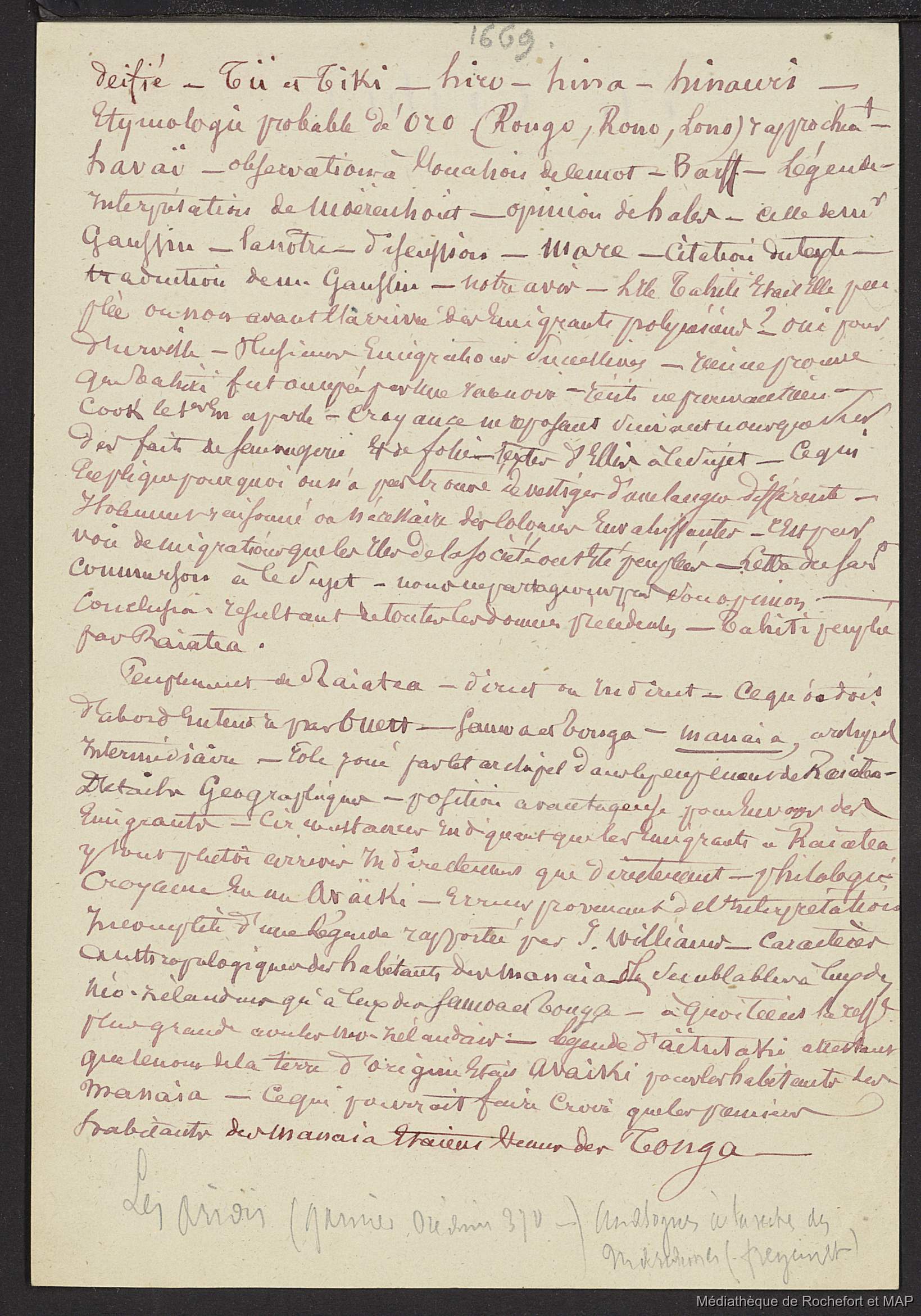 Lesson, Pierre-Adolphe [accessed: 2026/2/10]. "Théorie des migrations. Sur Tahiti et Manaia (B172996201_Ms00180)" (Object Id: 165510). In