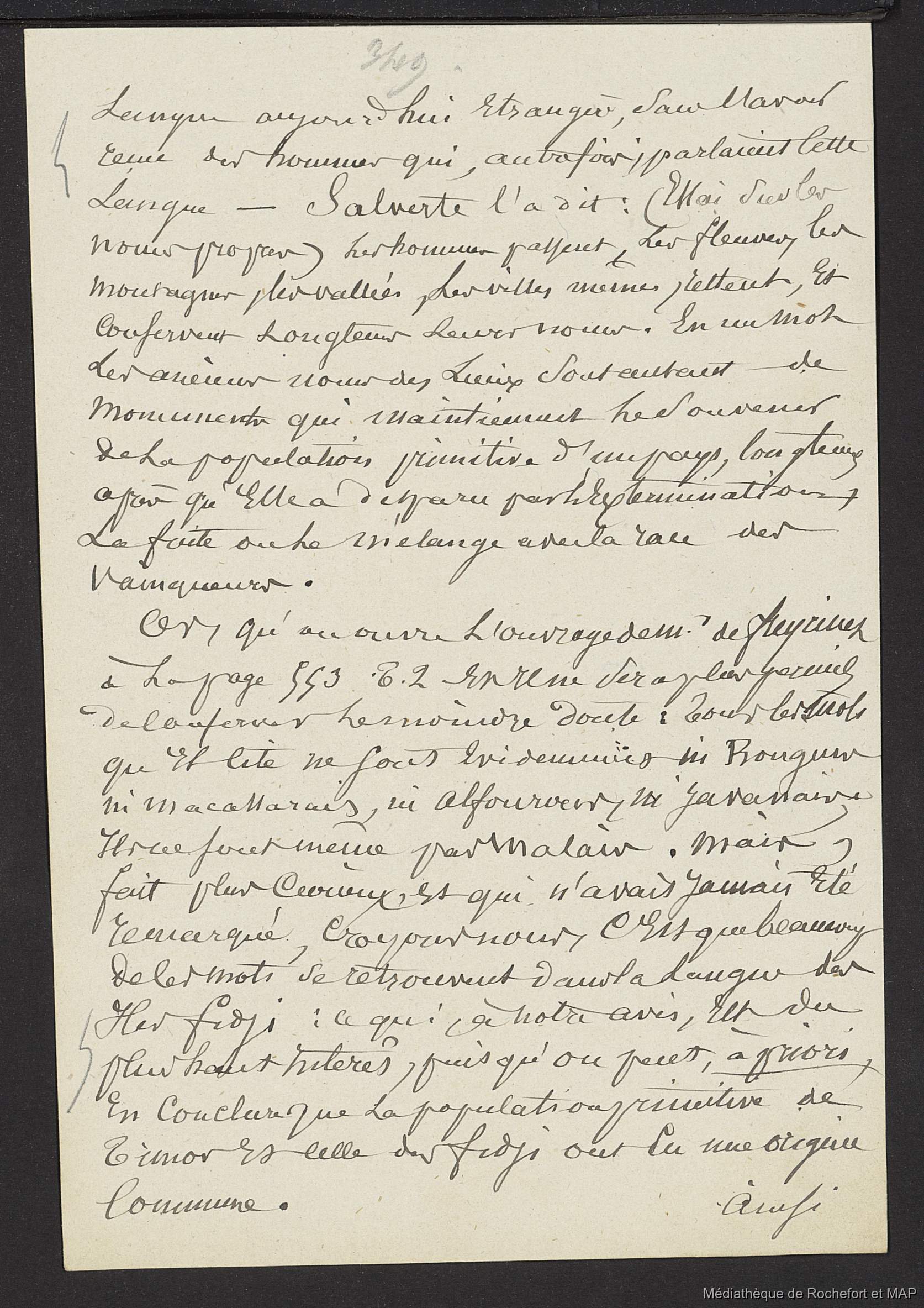 Lesson, Pierre-Adolphe [accessed: 2026/1/25]. "Théorie des migrations. Considération préliminaire sur les trois groupes, Samoa, Tunga et Fidji (B172996201_Ms00181)" (Object Id: 165549). In