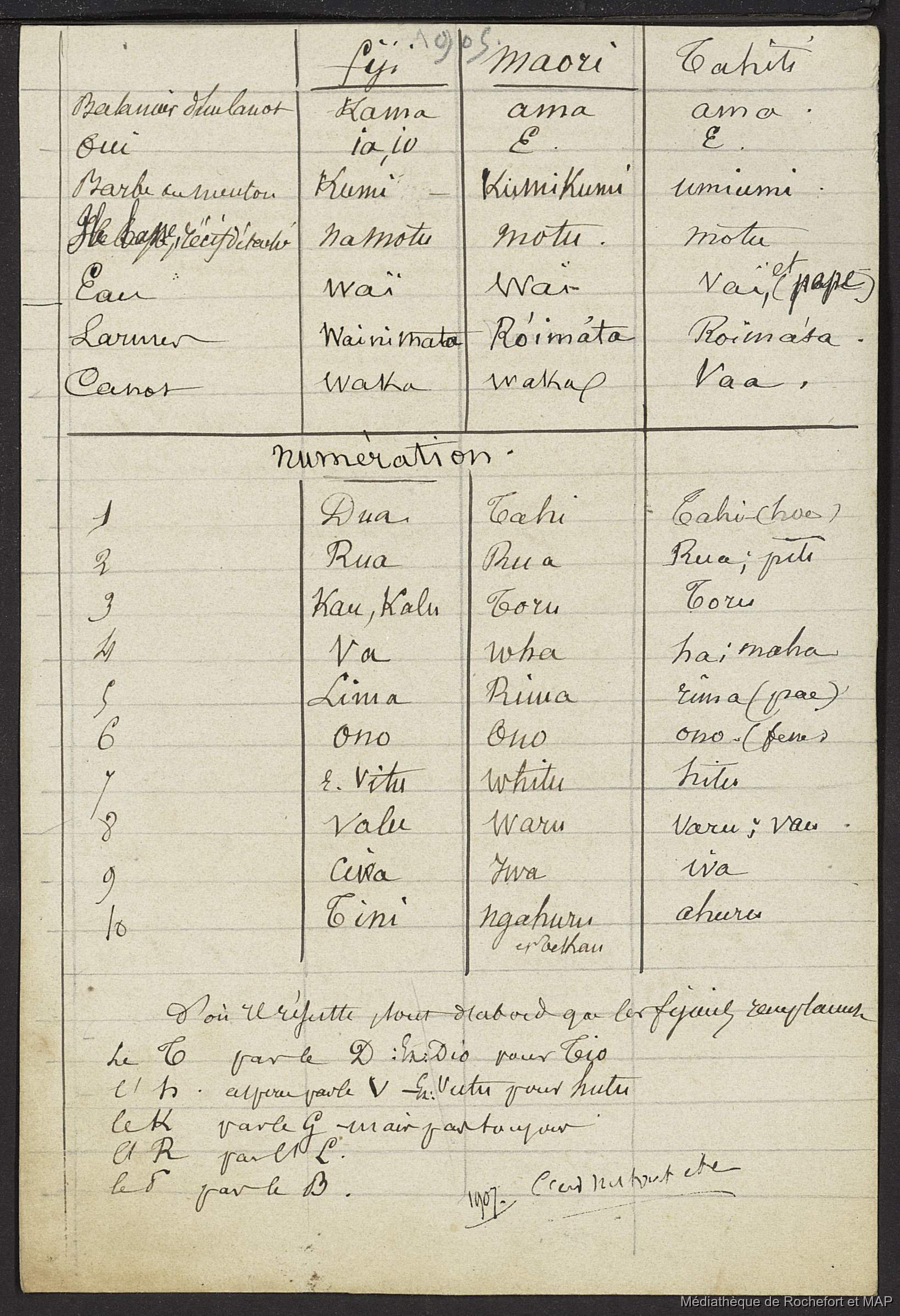 Théorie des migrations. Considération préliminaire sur les trois groupes, Samoa, Tunga et Fidji (B172996201_Ms00181) / Théorie des migrations. Considération préliminaire sur les trois groupes, Samoa, Tunga et Fidji (B172996201_Ms00181) / Lesson, Pierre-Adolphe /