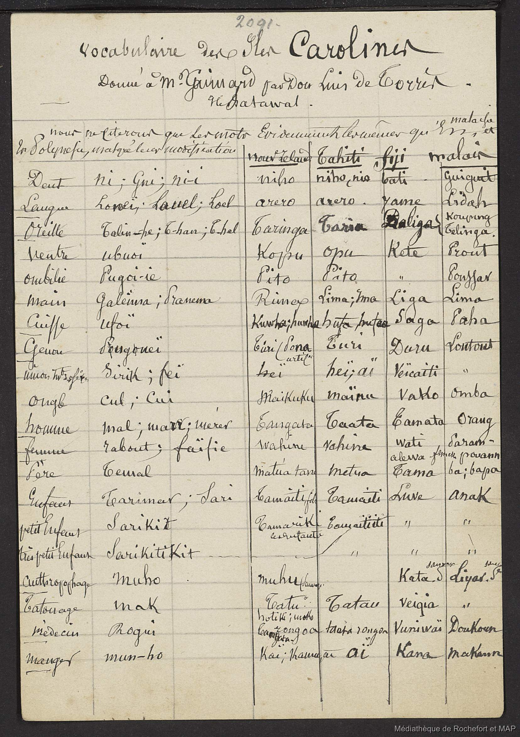 Lesson, Pierre-Adolphe [accessed: 2026/2/10]. "Théorie des migrations. Question Carolines et Mariannes ; Numération de la Nouvelle-Calédonie (B172996201_Ms00182)" (Object Id: 165618). In