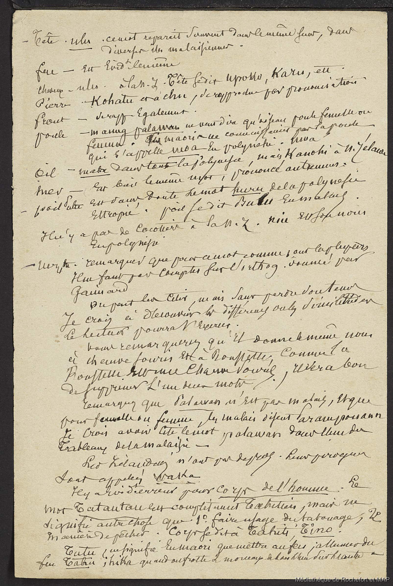 Lesson, Pierre-Adolphe [accessed: 2026/2/11]. "Théorie des migrations. Question Carolines et Mariannes ; Numération de la Nouvelle-Calédonie (B172996201_Ms00182)" (Object Id: 165653). In