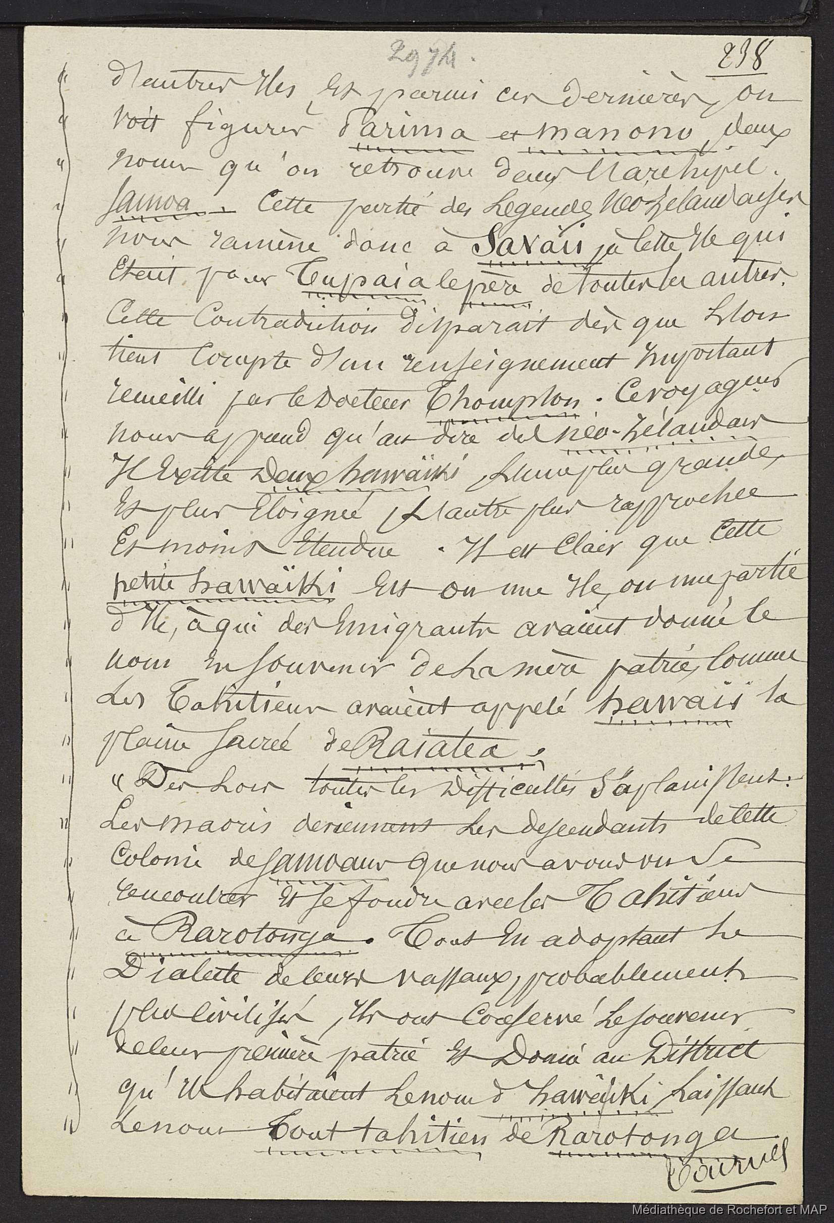 Quote this document Lesson, Pierre-Adolphe [accessed: 2026/2/3]. "Théorie des migrations. Lieu d'origine des Néo-Zélandais (B172996201_Ms00185)" (Object Id: 165785). In Théorie des migrations. Lieu d'origine des Néo-Zélandais (B172996201_Ms00185). ODSAS: https://www.odsas.net/object/165785.
