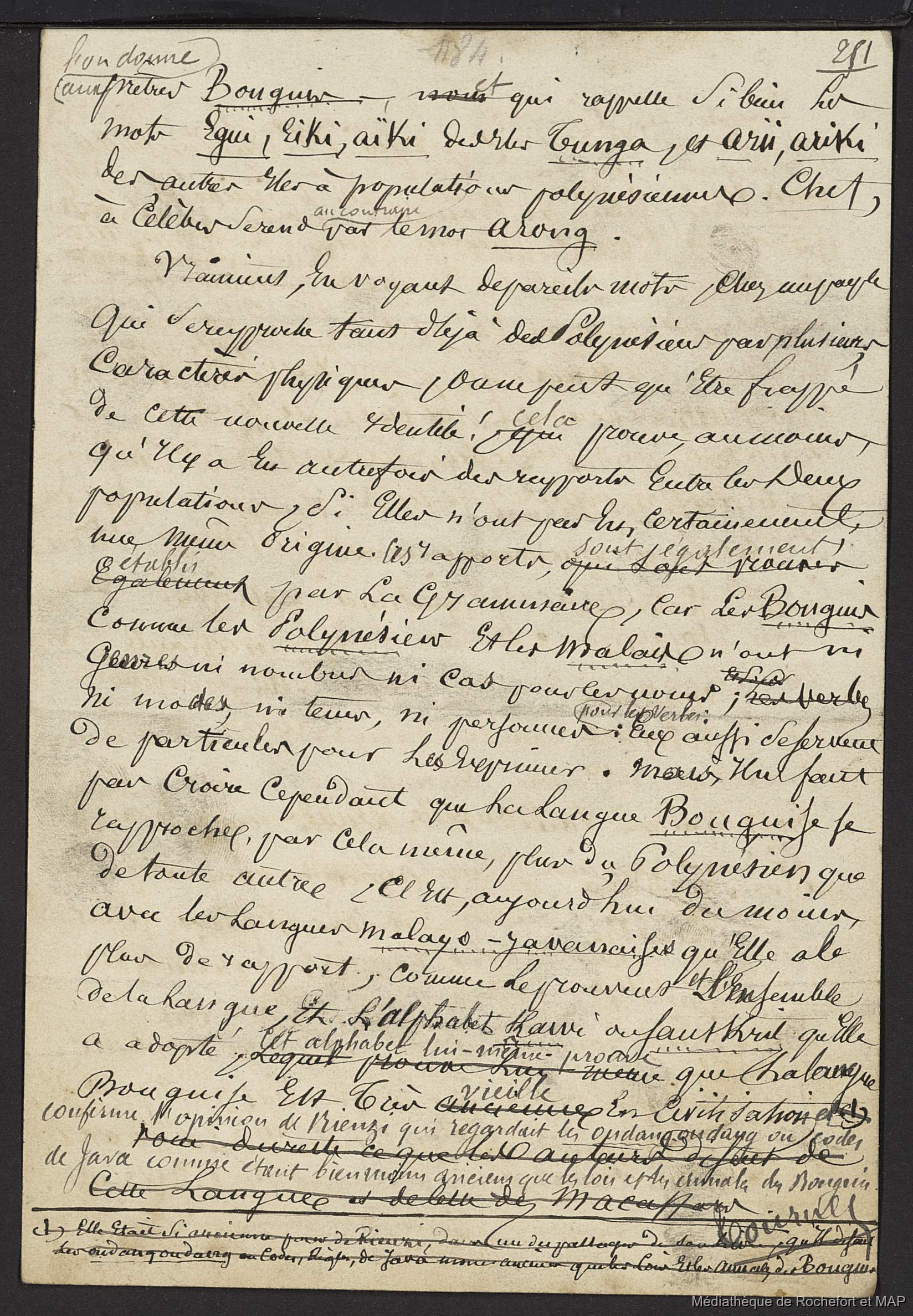 Théorie des migrations. Malaisiens, Battaks, Dayaks, banguis, alfourous; Conclusion de la 2ème grande théorie. (B172996201_Ms00189) [Set(s) 1443]