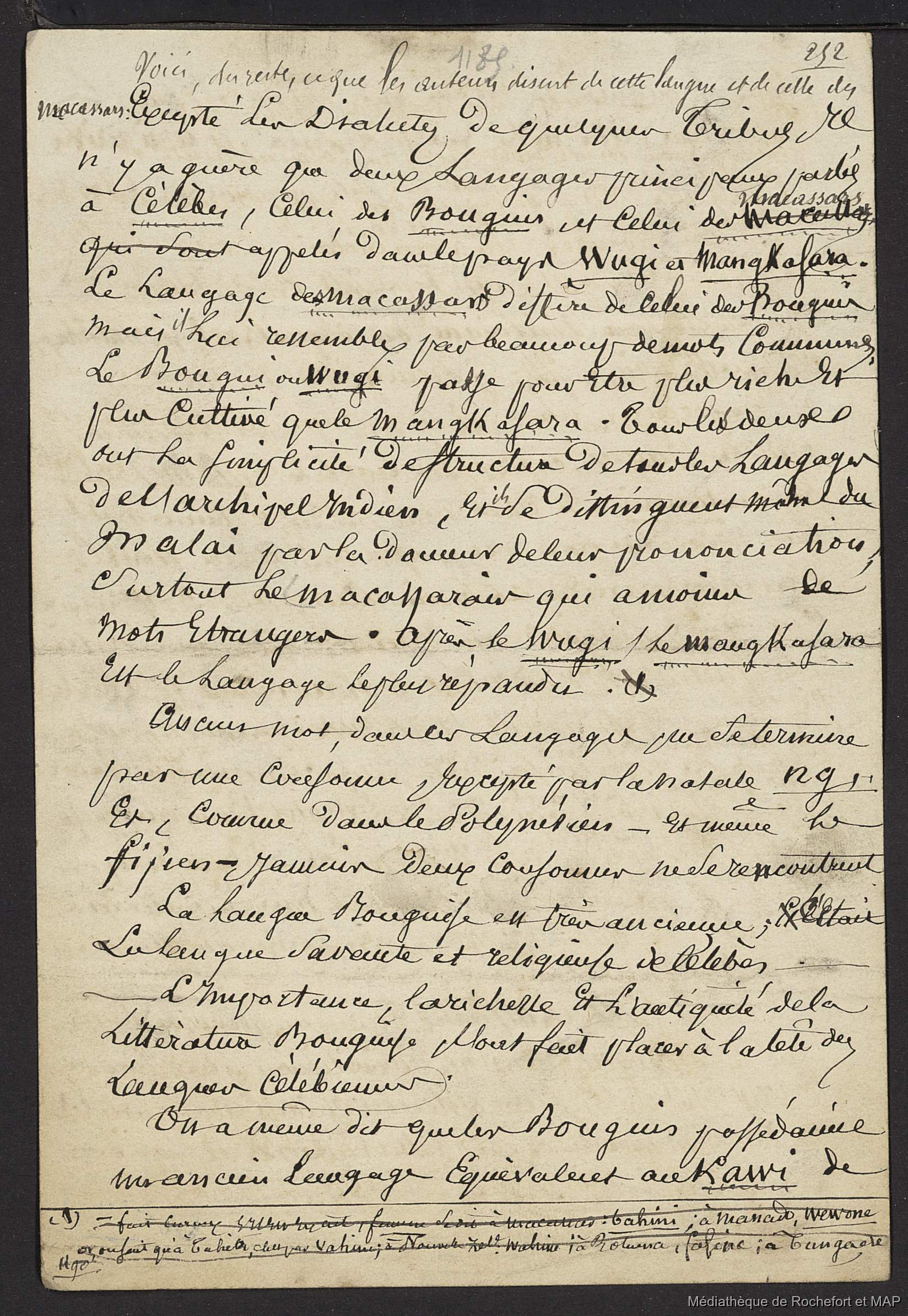 Théorie des migrations. Malaisiens, Battaks, Dayaks, banguis, alfourous; Conclusion de la 2ème grande théorie. (B172996201_Ms00189) [Set(s) 1443]