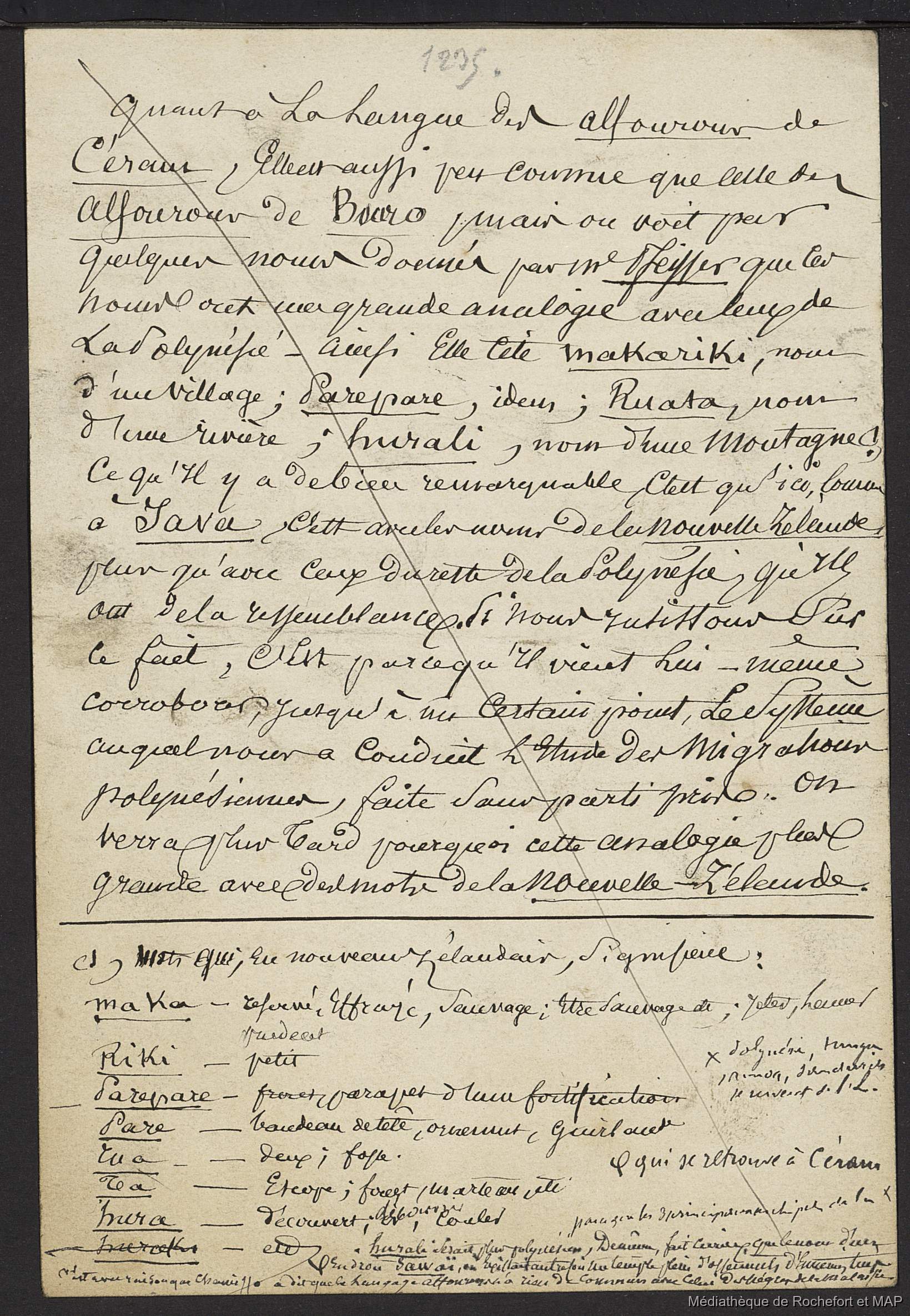 Théorie des migrations. Malaisiens, Battaks, Dayaks, banguis, alfourous; Conclusion de la 2ème grande théorie. (B172996201_Ms00189) [Set(s) 1443]