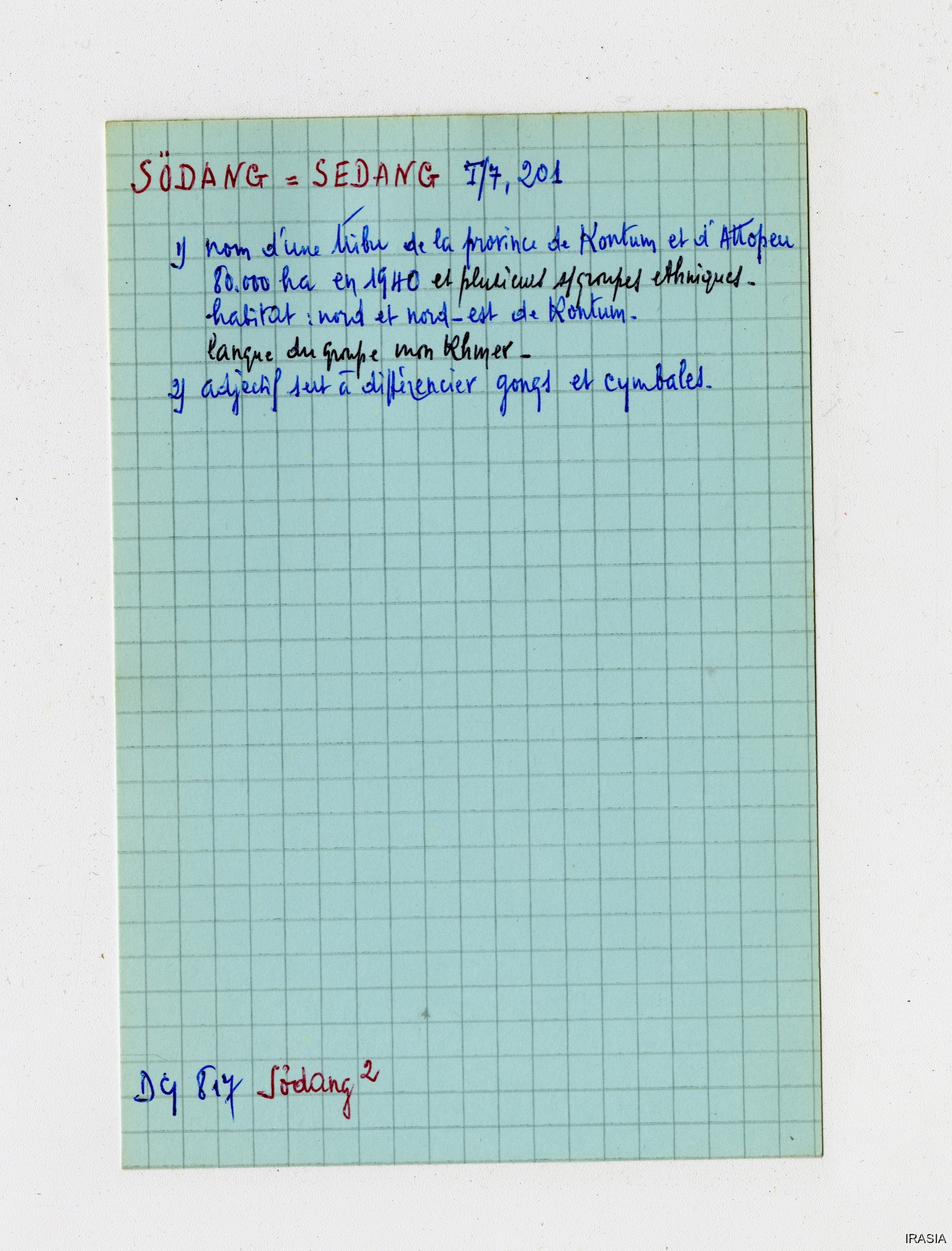 Quote this document Léger, Daniel [accessed: 2026/1/25]. "Lexique : Fiches Bahnar" (Object Id: 170901). In Lexique : Fiches Bahnar. ODSAS: https://www.odsas.net/object/170901.