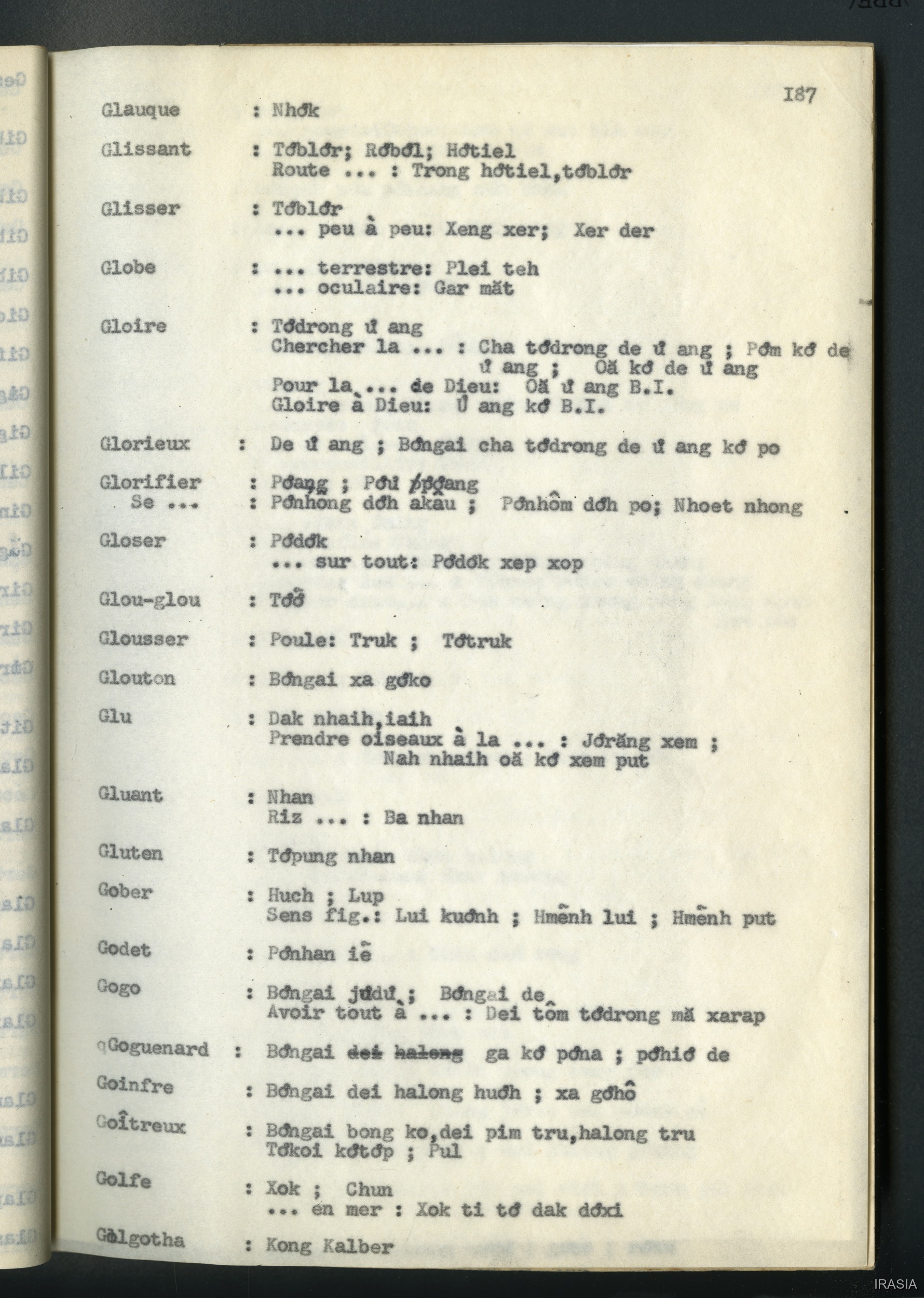 Quote this document Léger, Daniel [accessed: 2026/2/3]. "Lexique : dictionnaire français - bahnar EN" (Object Id: 171496). In Lexique : dictionnaire français - bahnar EN. ODSAS: https://www.odsas.net/object/171496.