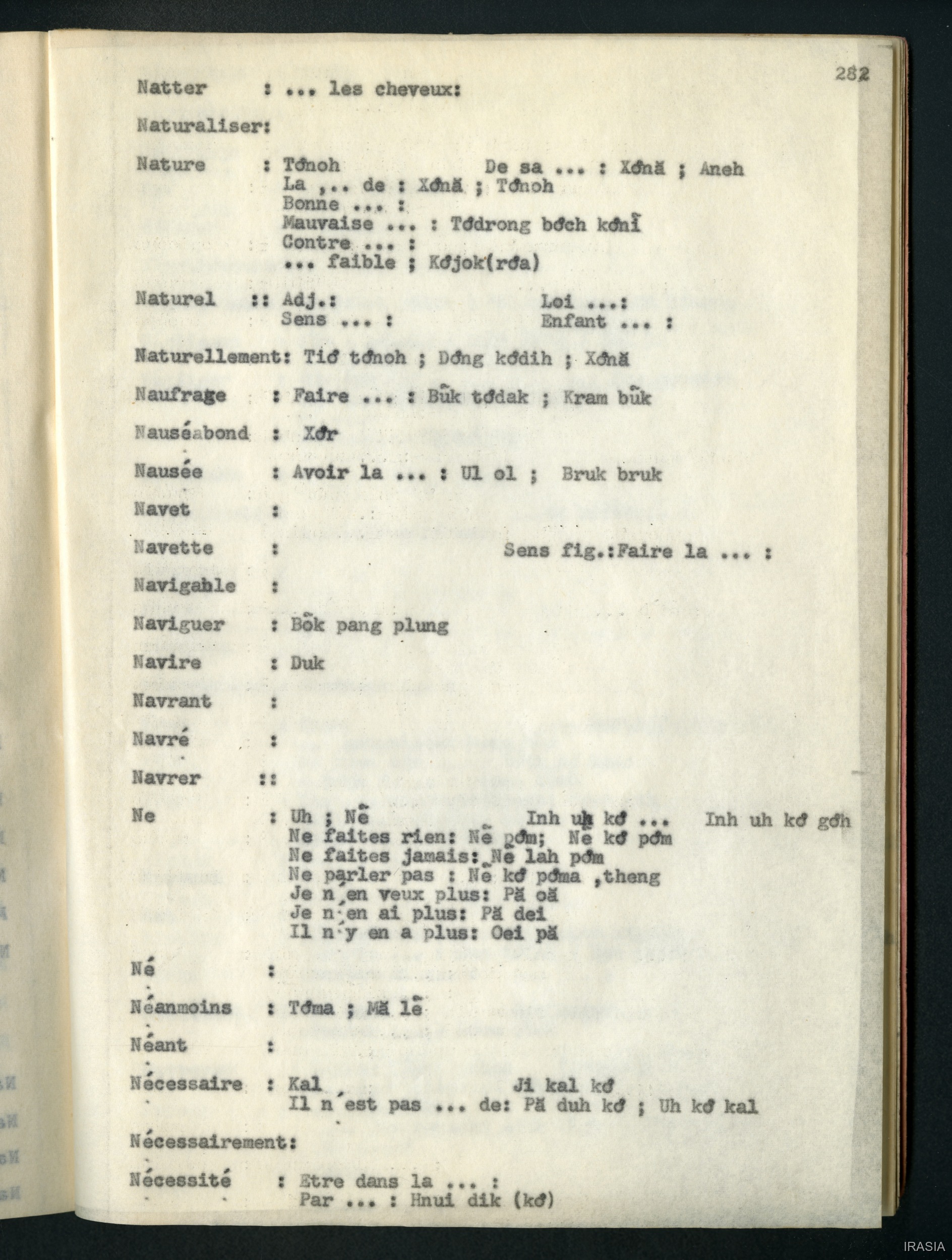 Quote this document Léger, Daniel [accessed: 2026/2/3]. "Lexique : dictionnaire français - bahnar EN" (Object Id: 171588). In Lexique : dictionnaire français - bahnar EN. ODSAS: https://www.odsas.net/object/171588.