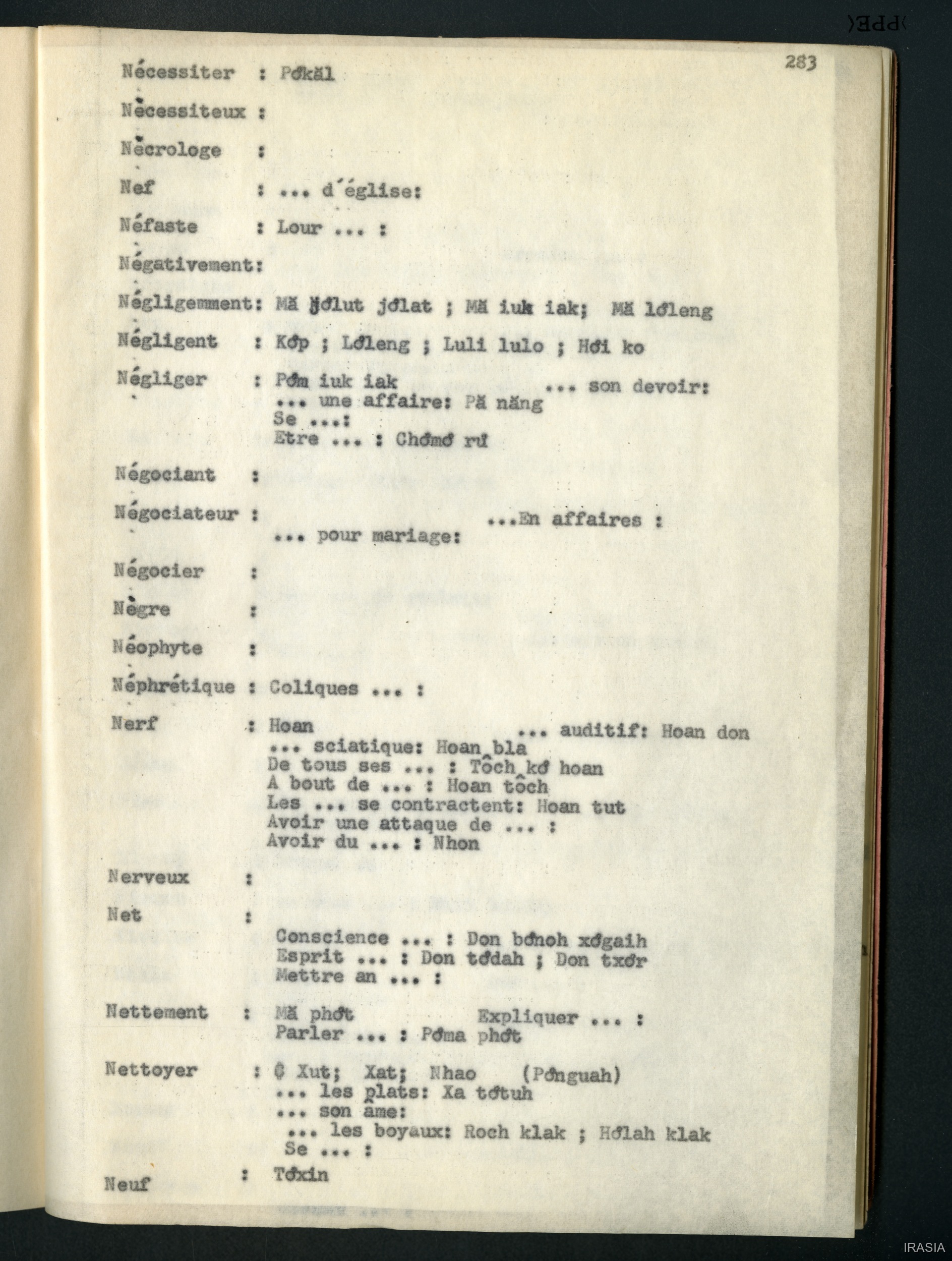 Léger, Daniel [accessed: 2026/2/3]. "Lexique : dictionnaire français - bahnar EN" (Object Id: 171589). In