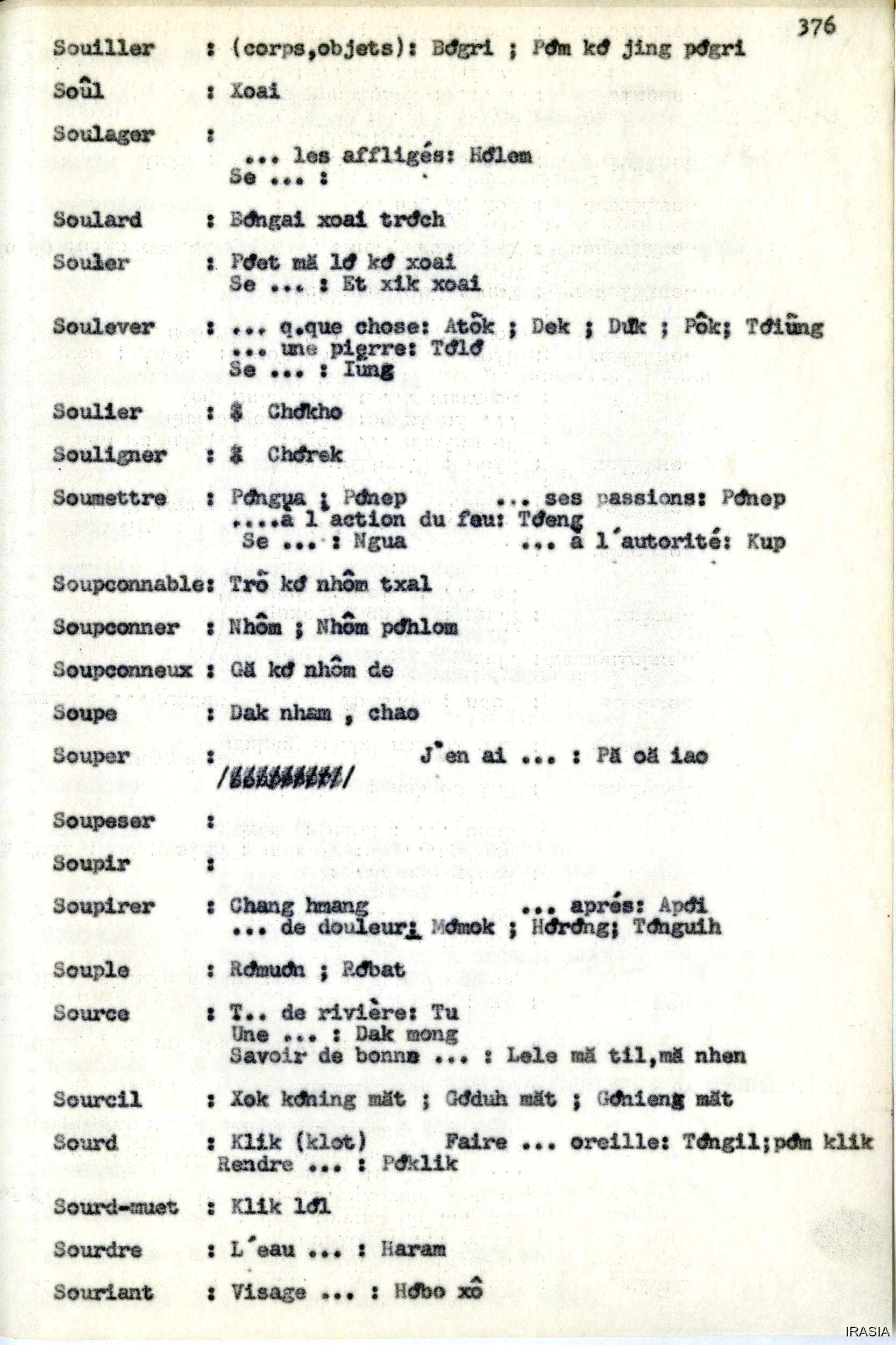 Quote this document Léger, Daniel [accessed: 2026/2/3]. "Lexique : dictionnaire Français - Bahnar OZ" (Object Id: 171689). In Lexique : dictionnaire Français - Bahnar OZ. ODSAS: https://www.odsas.net/object/171689.