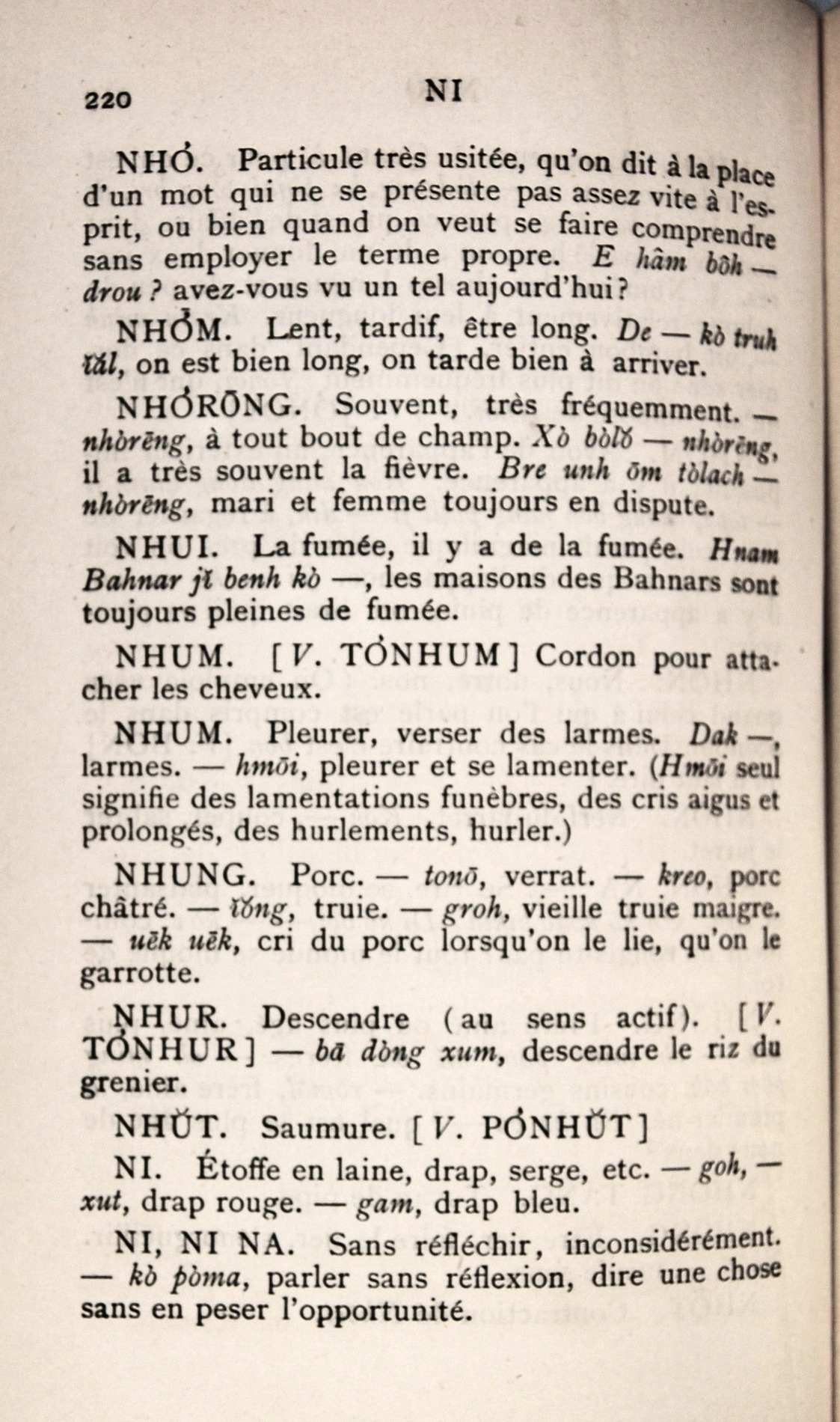 Dictionnaire Bahnar-Français, P.X. Dourisboure / lettre N: lettre NI / Dourisboure, P.X. /  Viet Nam/ Viet Nam
