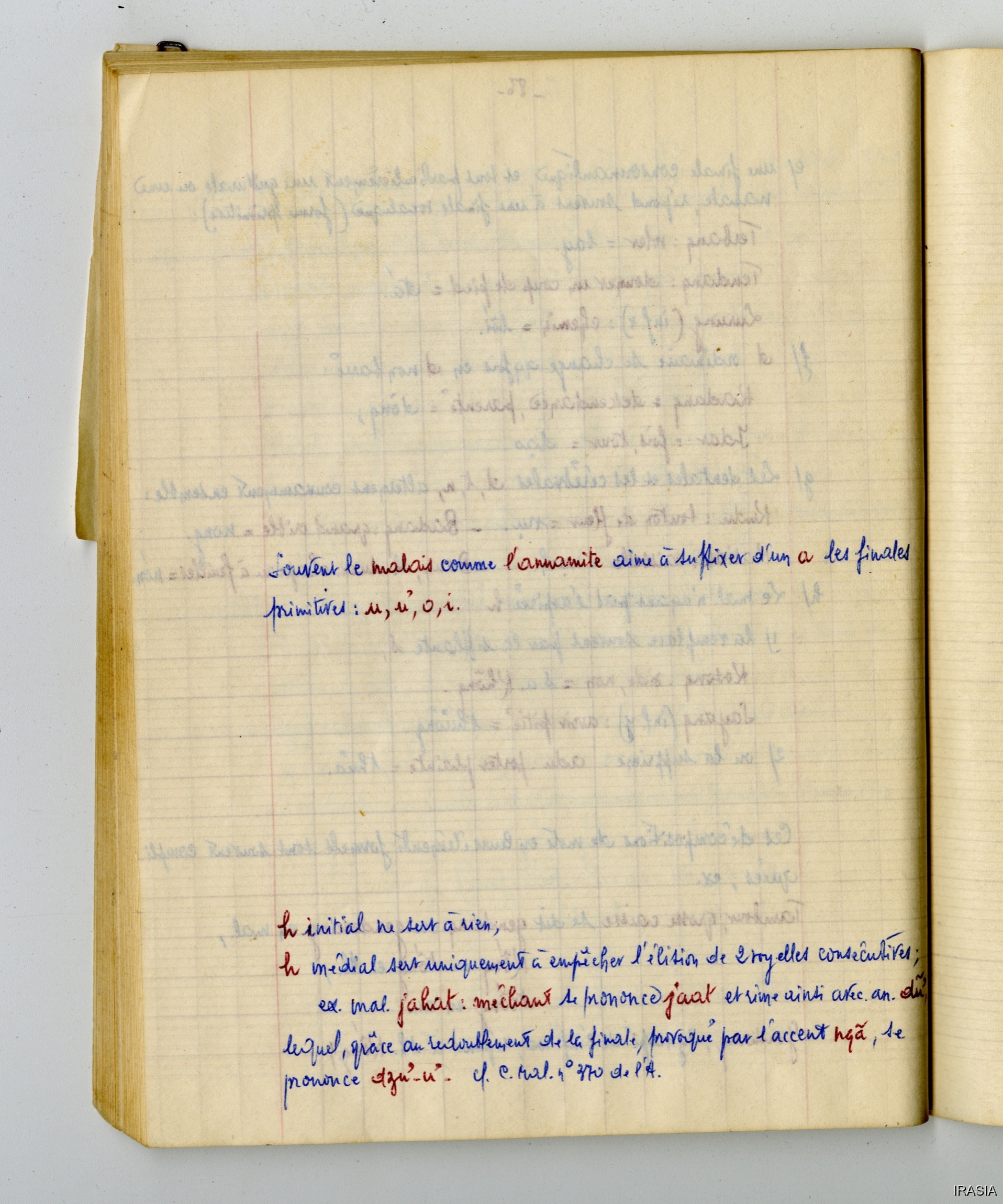 Fonds Léger : Thèse, Cahiers, Manuels, Missions...Cahier : éléments de linguistique T1172002<< >>