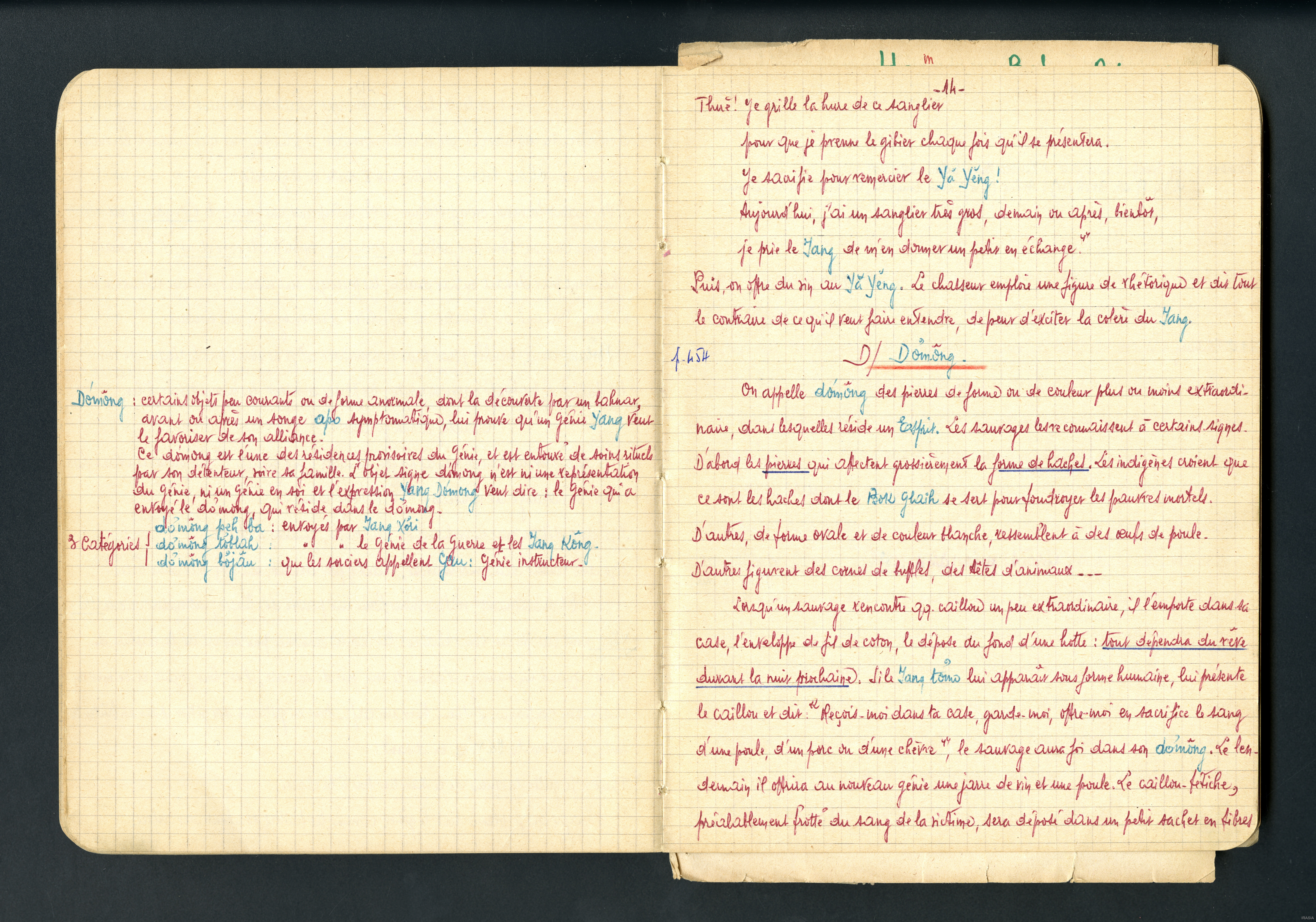 Cahier : moeurs et superstitions des Sauvages Bahnars